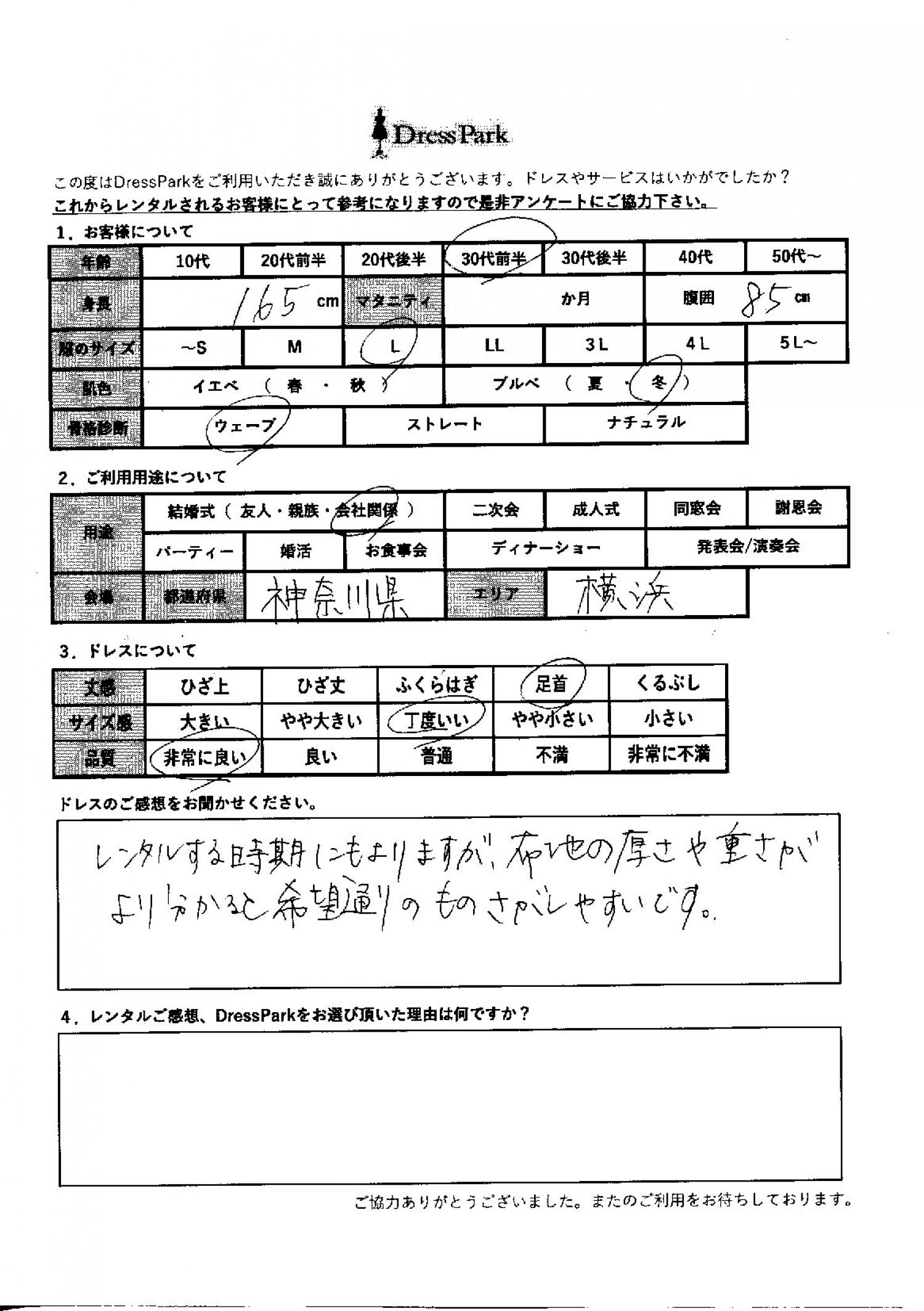 神奈川県 C.H様165㎝ Lサイズ横浜・みなとみらい #30代#M/L#165~169㎝#結婚式(会社関係)#神奈川県#横浜・みなとみらい ◆レンタルしたドレスはこちら ◆レンタルしたサイズは:L ◆レンタルした日付:2025/11/08 ドレスの着用感 ◆点数: (5点) ◆丈感:足首 ◆サイズ感:丁度いい ◆品質:非常に良い ◆肌色:ブルべ ◆骨格診断:ウェーブ ドレスの感想 レンタルする時期にもよりますが、布地の厚さや重さがよりわかると希望通りのものを探しやすいです。 CUSTOMER REVIEWS お客様の声 気になるカテゴリー別にご利用の感想をチェック! ◆AGE 年代で見る 10代 20代 30代 40代 50代~ ◆SIZE サイズで見る SS/S M/L 大きいサイズLL~ ◆HIGHT 身長で見る 140~149㎝ 150~154㎝ 155~159㎝ 160~164㎝ 165~169㎝ 170㎝以上 ◆マタニティ ~3か月 4~6か月 7~8か月 9~10か月 ◆肌色 イエベ ブルべ ◆骨格診断 ウェーブ ストレート ナチュラル ◆利用シーン 結婚式(友人) 結婚式(親族) 結婚式(会社関係) 二次会 成人式 謝恩会 パーティー その他 CUSTOMER REVIEWS都道府県別お客様の声 都道府県別にのお客様の声をチェック! 北海道 青森県 岩手県 宮城県 秋田県 山形県 福島県 茨城県 栃木県 群馬県 埼玉県 千葉県 東京都 神奈川県 新潟県 富山県 石川県 福井県 山梨県 長野県 岐阜県 静岡県 愛知県 三重県 滋賀県 京都府 大阪府 兵庫県 奈良県 和歌山県 鳥取県 島根県 岡山県 広島県 山口県 徳島県 香川県 愛媛県 高知県 福岡県 佐賀県 長崎県 熊本県 大分県 宮崎県 鹿児島県 沖縄県 CUSTOMER REVIEWSエリア別お客様の声 都道府県別にのお客様の声をチェック! 札幌 仙台 名古屋 軽井沢 金沢 神戸・芦屋 博多 那覇 梅田・新大阪 難波・心斎橋 鎌倉・湘南 横浜・みなとみらい 舞浜・浦安・幕張 大宮・浦和 青山・表参道 六本木・麻布 渋谷・恵比寿 新宿 池袋 銀座・丸の内 お台場・汐留 鹿児島市 郡山市 福島市 東予 甲府・石和 LINEでお問い合わせ このサイトではJavaScriptを使用しています