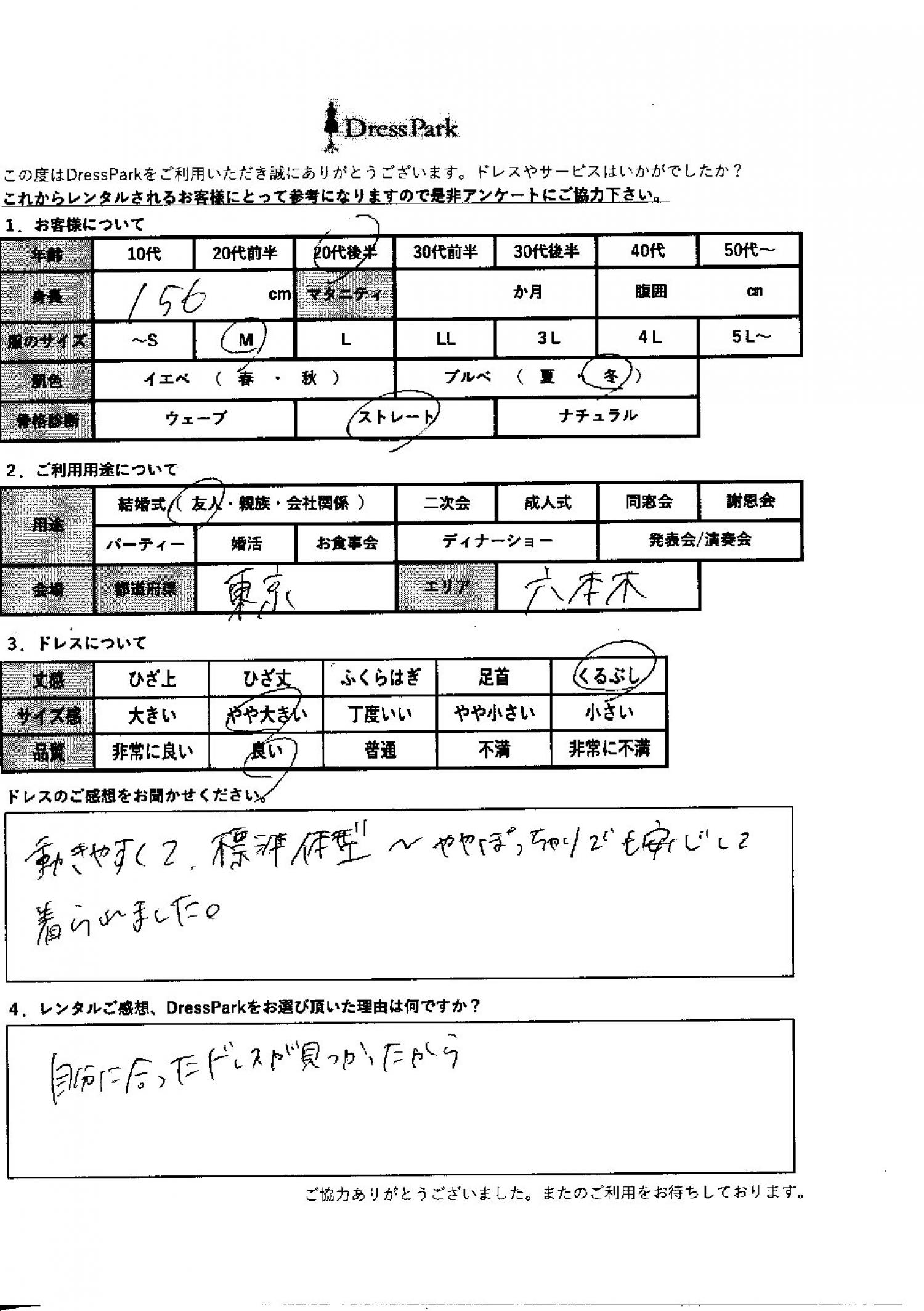 東京都 M.K様156㎝ Mサイズ六本木・麻布 #20代#M/L#155~159㎝#結婚式(友人)#東京都#六本木・麻布 ◆レンタルしたドレスはこちら ◆レンタルしたサイズは:M ◆レンタルした日付:2025/11/09 ドレスの着用感 ◆点数: (4点) ◆丈感:くるぶし ◆サイズ感:やや大きい ◆品質:良い ◆肌色:ブルべ ◆骨格診断:ストレート ドレスの感想 動きやすくて、標準体型〜ややぽっちゃりでも安心して着られました。 レンタルのご感想、DressParkをお選び頂いた理由 自分に合ったドレスが見つかったから。 CUSTOMER REVIEWS お客様の声 気になるカテゴリー別にご利用の感想をチェック! ◆AGE 年代で見る 10代 20代 30代 40代 50代~ ◆SIZE サイズで見る SS/S M/L 大きいサイズLL~ ◆HIGHT 身長で見る 140~149㎝ 150~154㎝ 155~159㎝ 160~164㎝ 165~169㎝ 170㎝以上 ◆マタニティ ~3か月 4~6か月 7~8か月 9~10か月 ◆肌色 イエベ ブルべ ◆骨格診断 ウェーブ ストレート ナチュラル ◆利用シーン 結婚式(友人) 結婚式(親族) 結婚式(会社関係) 二次会 成人式 謝恩会 パーティー その他 CUSTOMER REVIEWS都道府県別お客様の声 都道府県別にのお客様の声をチェック! 北海道 青森県 岩手県 宮城県 秋田県 山形県 福島県 茨城県 栃木県 群馬県 埼玉県 千葉県 東京都 神奈川県 新潟県 富山県 石川県 福井県 山梨県 長野県 岐阜県 静岡県 愛知県 三重県 滋賀県 京都府 大阪府 兵庫県 奈良県 和歌山県 鳥取県 島根県 岡山県 広島県 山口県 徳島県 香川県 愛媛県 高知県 福岡県 佐賀県 長崎県 熊本県 大分県 宮崎県 鹿児島県 沖縄県 CUSTOMER REVIEWSエリア別お客様の声 都道府県別にのお客様の声をチェック! 札幌 仙台 名古屋 軽井沢 金沢 神戸・芦屋 博多 那覇 梅田・新大阪 難波・心斎橋 鎌倉・湘南 横浜・みなとみらい 舞浜・浦安・幕張 大宮・浦和 青山・表参道 六本木・麻布 渋谷・恵比寿 新宿 池袋 銀座・丸の内 お台場・汐留 鹿児島市 郡山市 福島市 東予 甲府・石和 LINEでお問い合わせ このサイトではJavaScriptを使用しています