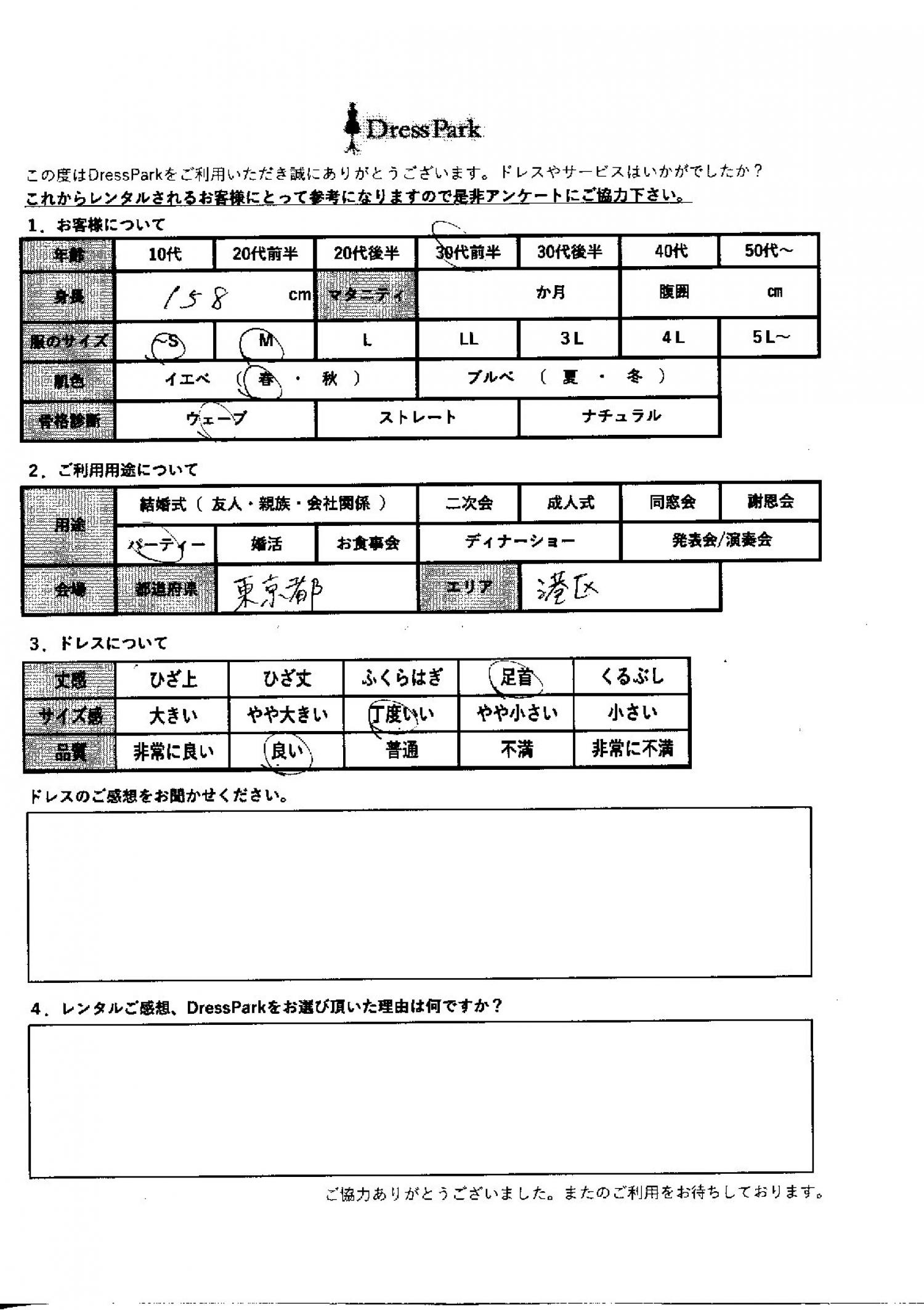 東京都 A.F様158㎝ ~Sサイズ六本木・麻布