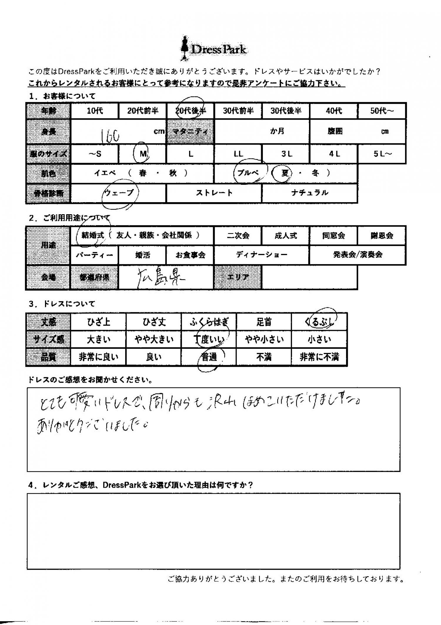 広島県 K.S様160㎝ Mサイズ #20代#M/L#160~164㎝#結婚式(友人)#広島県 ◆レンタルしたドレスはこちら ◆レンタルしたサイズは:S ◆レンタルした日付:2025/11/15 ドレスの着用感 ◆点数: (4点) ◆丈感:くるぶし ◆サイズ感:丁度いい ◆品質:普通 ◆肌色:ブルべ ◆骨格診断:ウェーブ ドレスの感想 とても可愛いドレスで、周りからもたくさん褒めていただけました。ありがとうございました。 CUSTOMER REVIEWS お客様の声 気になるカテゴリー別にご利用の感想をチェック! ◆AGE 年代で見る 10代 20代 30代 40代 50代~ ◆SIZE サイズで見る SS/S M/L 大きいサイズLL~ ◆HIGHT 身長で見る 140~149㎝ 150~154㎝ 155~159㎝ 160~164㎝ 165~169㎝ 170㎝以上 ◆マタニティ ~3か月 4~6か月 7~8か月 9~10か月 ◆肌色 イエベ ブルべ ◆骨格診断 ウェーブ ストレート ナチュラル ◆利用シーン 結婚式(友人) 結婚式(親族) 結婚式(会社関係) 二次会 成人式 謝恩会 パーティー その他 CUSTOMER REVIEWS都道府県別お客様の声 都道府県別にのお客様の声をチェック! 北海道 青森県 岩手県 宮城県 秋田県 山形県 福島県 茨城県 栃木県 群馬県 埼玉県 千葉県 東京都 神奈川県 新潟県 富山県 石川県 福井県 山梨県 長野県 岐阜県 静岡県 愛知県 三重県 滋賀県 京都府 大阪府 兵庫県 奈良県 和歌山県 鳥取県 島根県 岡山県 広島県 山口県 徳島県 香川県 愛媛県 高知県 福岡県 佐賀県 長崎県 熊本県 大分県 宮崎県 鹿児島県 沖縄県 CUSTOMER REVIEWSエリア別お客様の声 都道府県別にのお客様の声をチェック! 札幌 仙台 名古屋 軽井沢 金沢 神戸・芦屋 博多 那覇 梅田・新大阪 難波・心斎橋 鎌倉・湘南 横浜・みなとみらい 舞浜・浦安・幕張 大宮・浦和 青山・表参道 六本木・麻布 渋谷・恵比寿 新宿 池袋 銀座・丸の内 お台場・汐留 鹿児島市 郡山市 福島市 東予 甲府・石和 LINEでお問い合わせ このサイトではJavaScriptを使用しています