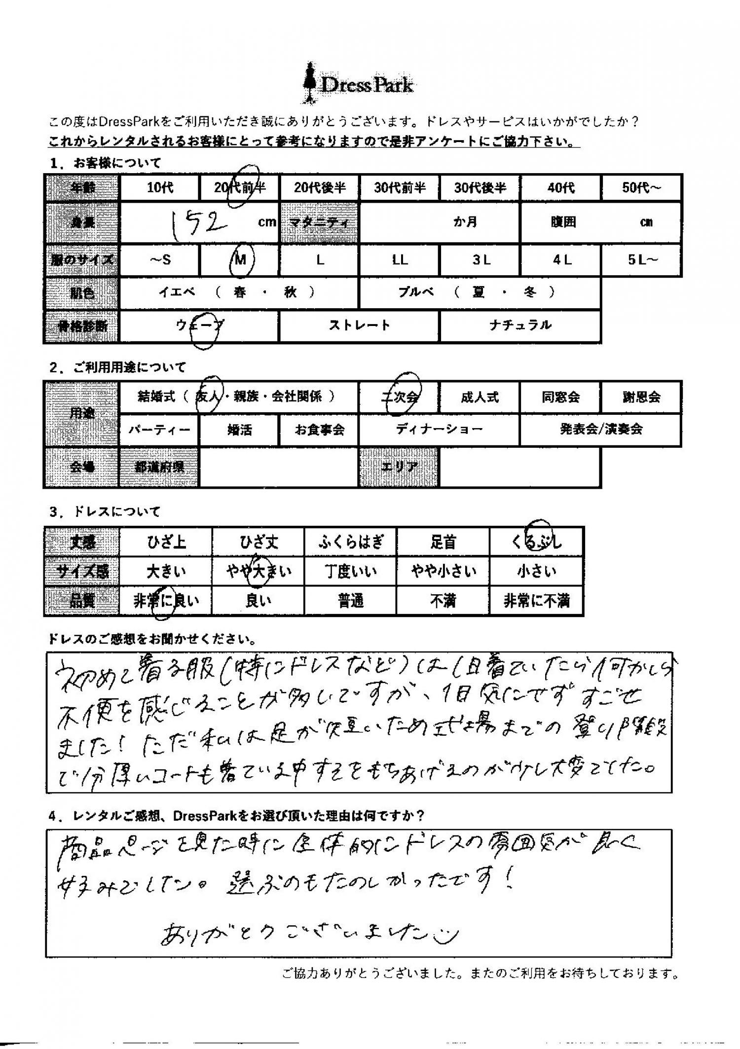 商品ページを見たときに、全体的にドレスの雰囲気が良く、好みでした。選ぶのも楽しかったです!ありがとうございました。