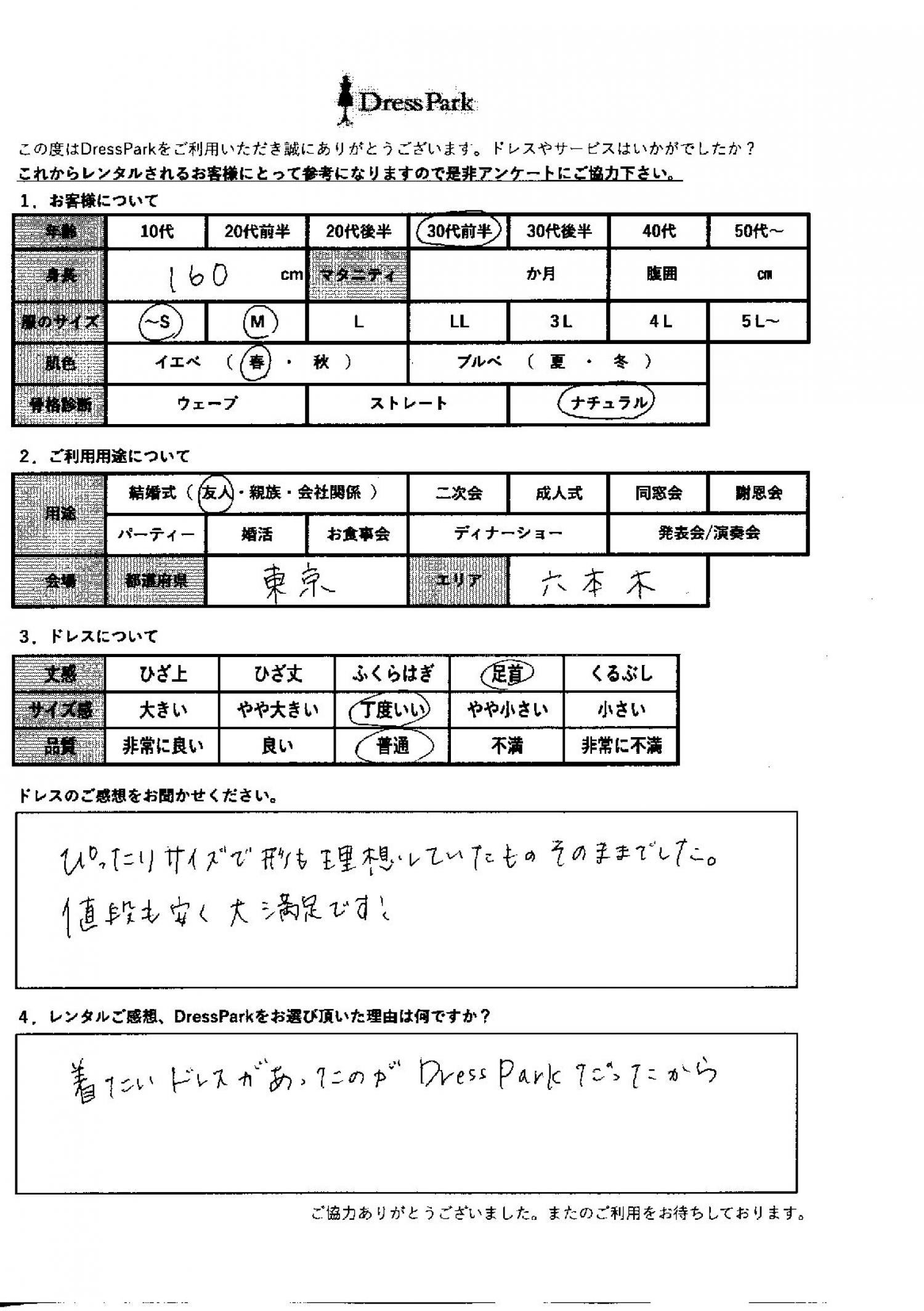 東京都 S.W様160㎝ Mサイズ六本木・麻布 #30代#M/L#160~164㎝#結婚式(友人)#東京都#六本木・麻布 ◆レンタルしたドレスはこちら ◆レンタルしたサイズは:M ◆レンタルした日付:2025/11/16 ドレスの着用感 ◆点数: (5点) ◆丈感:足首 ◆サイズ感:丁度いい ◆品質:普通 ◆肌色:イエベ ◆骨格診断:ナチュラル ドレスの感想 ぴったりサイズで形も理想としていたものそのままでした。値段も安く大満足です! レンタルのご感想、DressParkをお選び頂いた理由 着たいドレスがあったのがドレスパークだったから。 CUSTOMER REVIEWS お客様の声 気になるカテゴリー別にご利用の感想をチェック! ◆AGE 年代で見る 10代 20代 30代 40代 50代~ ◆SIZE サイズで見る SS/S M/L 大きいサイズLL~ ◆HIGHT 身長で見る 140~149㎝ 150~154㎝ 155~159㎝ 160~164㎝ 165~169㎝ 170㎝以上 ◆マタニティ ~3か月 4~6か月 7~8か月 9~10か月 ◆肌色 イエベ ブルべ ◆骨格診断 ウェーブ ストレート ナチュラル ◆利用シーン 結婚式(友人) 結婚式(親族) 結婚式(会社関係) 二次会 成人式 謝恩会 パーティー その他 CUSTOMER REVIEWS都道府県別お客様の声 都道府県別にのお客様の声をチェック! 北海道 青森県 岩手県 宮城県 秋田県 山形県 福島県 茨城県 栃木県 群馬県 埼玉県 千葉県 東京都 神奈川県 新潟県 富山県 石川県 福井県 山梨県 長野県 岐阜県 静岡県 愛知県 三重県 滋賀県 京都府 大阪府 兵庫県 奈良県 和歌山県 鳥取県 島根県 岡山県 広島県 山口県 徳島県 香川県 愛媛県 高知県 福岡県 佐賀県 長崎県 熊本県 大分県 宮崎県 鹿児島県 沖縄県 CUSTOMER REVIEWSエリア別お客様の声 都道府県別にのお客様の声をチェック! 札幌 仙台 名古屋 軽井沢 金沢 神戸・芦屋 博多 那覇 梅田・新大阪 難波・心斎橋 鎌倉・湘南 横浜・みなとみらい 舞浜・浦安・幕張 大宮・浦和 青山・表参道 六本木・麻布 渋谷・恵比寿 新宿 池袋 銀座・丸の内 お台場・汐留 鹿児島市 郡山市 福島市 東予 甲府・石和 LINEでお問い合わせ このサイトではJavaScriptを使用しています