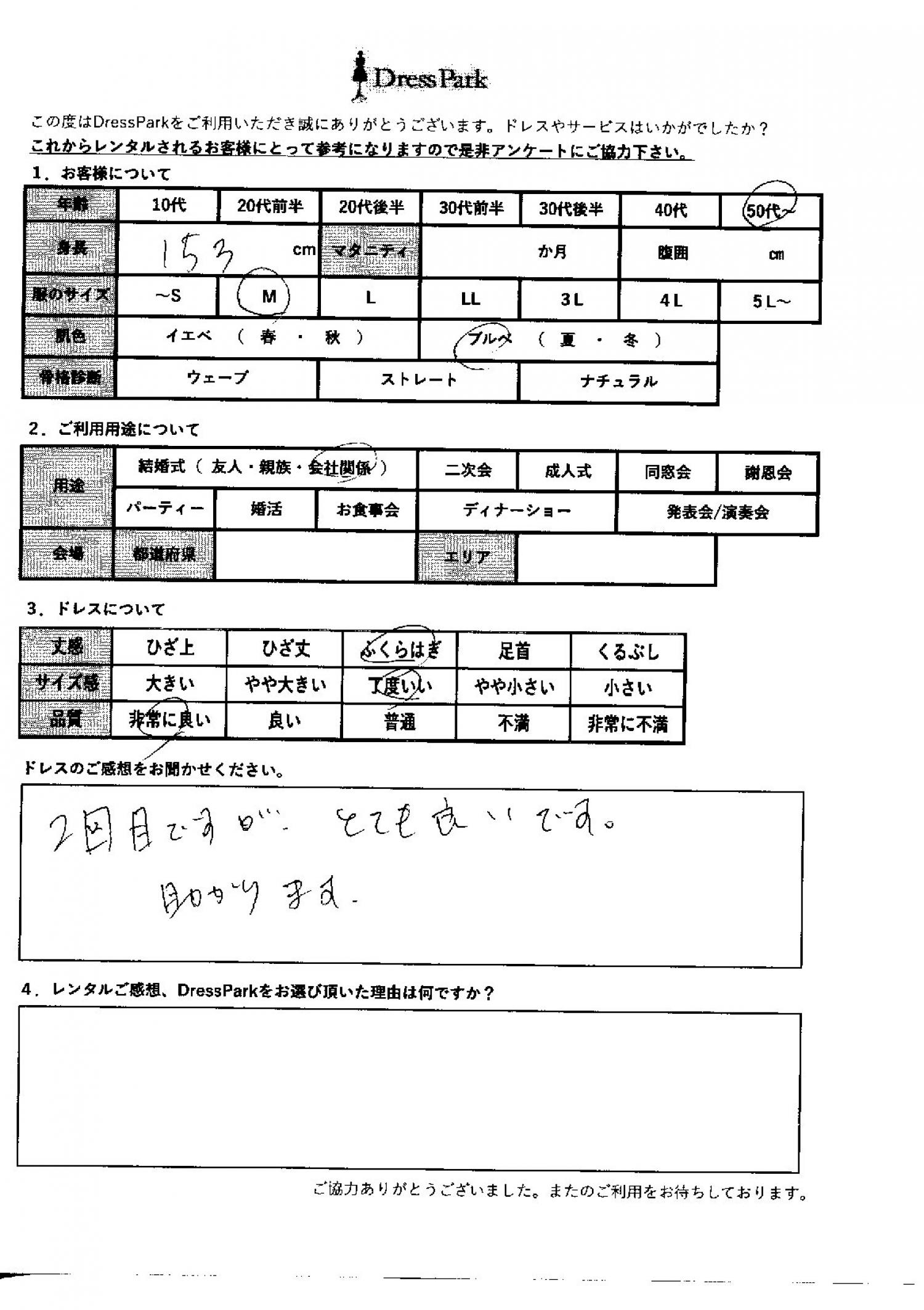 神奈川県 Y.A様153㎝ Mサイズ横浜・みなとみらい #50代~#M/L#150~154㎝#結婚式(会社関係)#神奈川県#横浜・みなとみらい ◆レンタルしたドレスはこちら ◆レンタルしたサイズは:M ◆レンタルした日付:2025/11/22 ドレスの着用感 ◆点数: (5点) ◆丈感:ふくらはぎ ◆サイズ感:丁度いい ◆品質:非常に良い ◆肌色:ブルべ ドレスの感想 2回目ですが、とても良いです。助かります。 CUSTOMER REVIEWS お客様の声 気になるカテゴリー別にご利用の感想をチェック! ◆AGE 年代で見る 10代 20代 30代 40代 50代~ ◆SIZE サイズで見る SS/S M/L 大きいサイズLL~ ◆HIGHT 身長で見る 140~149㎝ 150~154㎝ 155~159㎝ 160~164㎝ 165~169㎝ 170㎝以上 ◆マタニティ ~3か月 4~6か月 7~8か月 9~10か月 ◆肌色 イエベ ブルべ ◆骨格診断 ウェーブ ストレート ナチュラル ◆利用シーン 結婚式(友人) 結婚式(親族) 結婚式(会社関係) 二次会 成人式 謝恩会 パーティー その他 CUSTOMER REVIEWS都道府県別お客様の声 都道府県別にのお客様の声をチェック! 北海道 青森県 岩手県 宮城県 秋田県 山形県 福島県 茨城県 栃木県 群馬県 埼玉県 千葉県 東京都 神奈川県 新潟県 富山県 石川県 福井県 山梨県 長野県 岐阜県 静岡県 愛知県 三重県 滋賀県 京都府 大阪府 兵庫県 奈良県 和歌山県 鳥取県 島根県 岡山県 広島県 山口県 徳島県 香川県 愛媛県 高知県 福岡県 佐賀県 長崎県 熊本県 大分県 宮崎県 鹿児島県 沖縄県 CUSTOMER REVIEWSエリア別お客様の声 都道府県別にのお客様の声をチェック! 札幌 仙台 名古屋 軽井沢 金沢 神戸・芦屋 博多 那覇 梅田・新大阪 難波・心斎橋 鎌倉・湘南 横浜・みなとみらい 舞浜・浦安・幕張 大宮・浦和 青山・表参道 六本木・麻布 渋谷・恵比寿 新宿 池袋 銀座・丸の内 お台場・汐留 鹿児島市 郡山市 福島市 東予 甲府・石和 LINEでお問い合わせ このサイトではJavaScriptを使用しています