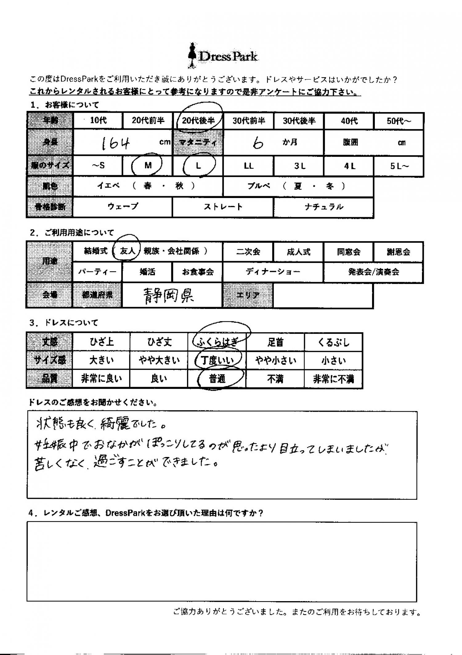 静岡県 C.S様164㎝ Mサイズ マタニティ #20代#M/L#160~164㎝#結婚式(友人)#静岡県 ◆レンタルしたドレスはこちら ◆レンタルしたサイズは:M ◆レンタルした日付:2025/11/22 ドレスの着用感 ◆点数: (4点) ◆丈感:ふくらはぎ ◆サイズ感:丁度いい ◆品質:普通 ◆マタニティ: ドレスの感想 状態も良く綺麗でした。妊娠中のお腹がぽっこりしているのが思ったより目立ってしまいましたが、苦しくなく過ごすことができました。 CUSTOMER REVIEWS お客様の声 気になるカテゴリー別にご利用の感想をチェック! ◆AGE 年代で見る 10代 20代 30代 40代 50代~ ◆SIZE サイズで見る SS/S M/L 大きいサイズLL~ ◆HIGHT 身長で見る 140~149㎝ 150~154㎝ 155~159㎝ 160~164㎝ 165~169㎝ 170㎝以上 ◆マタニティ ~3か月 4~6か月 7~8か月 9~10か月 ◆肌色 イエベ ブルべ ◆骨格診断 ウェーブ ストレート ナチュラル ◆利用シーン 結婚式(友人) 結婚式(親族) 結婚式(会社関係) 二次会 成人式 謝恩会 パーティー その他 CUSTOMER REVIEWS都道府県別お客様の声 都道府県別にのお客様の声をチェック! 北海道 青森県 岩手県 宮城県 秋田県 山形県 福島県 茨城県 栃木県 群馬県 埼玉県 千葉県 東京都 神奈川県 新潟県 富山県 石川県 福井県 山梨県 長野県 岐阜県 静岡県 愛知県 三重県 滋賀県 京都府 大阪府 兵庫県 奈良県 和歌山県 鳥取県 島根県 岡山県 広島県 山口県 徳島県 香川県 愛媛県 高知県 福岡県 佐賀県 長崎県 熊本県 大分県 宮崎県 鹿児島県 沖縄県 CUSTOMER REVIEWSエリア別お客様の声 都道府県別にのお客様の声をチェック! 札幌 仙台 名古屋 軽井沢 金沢 神戸・芦屋 博多 那覇 梅田・新大阪 難波・心斎橋 鎌倉・湘南 横浜・みなとみらい 舞浜・浦安・幕張 大宮・浦和 青山・表参道 六本木・麻布 渋谷・恵比寿 新宿 池袋 銀座・丸の内 お台場・汐留 鹿児島市 郡山市 福島市 東予 甲府・石和 LINEでお問い合わせ このサイトではJavaScriptを使用しています