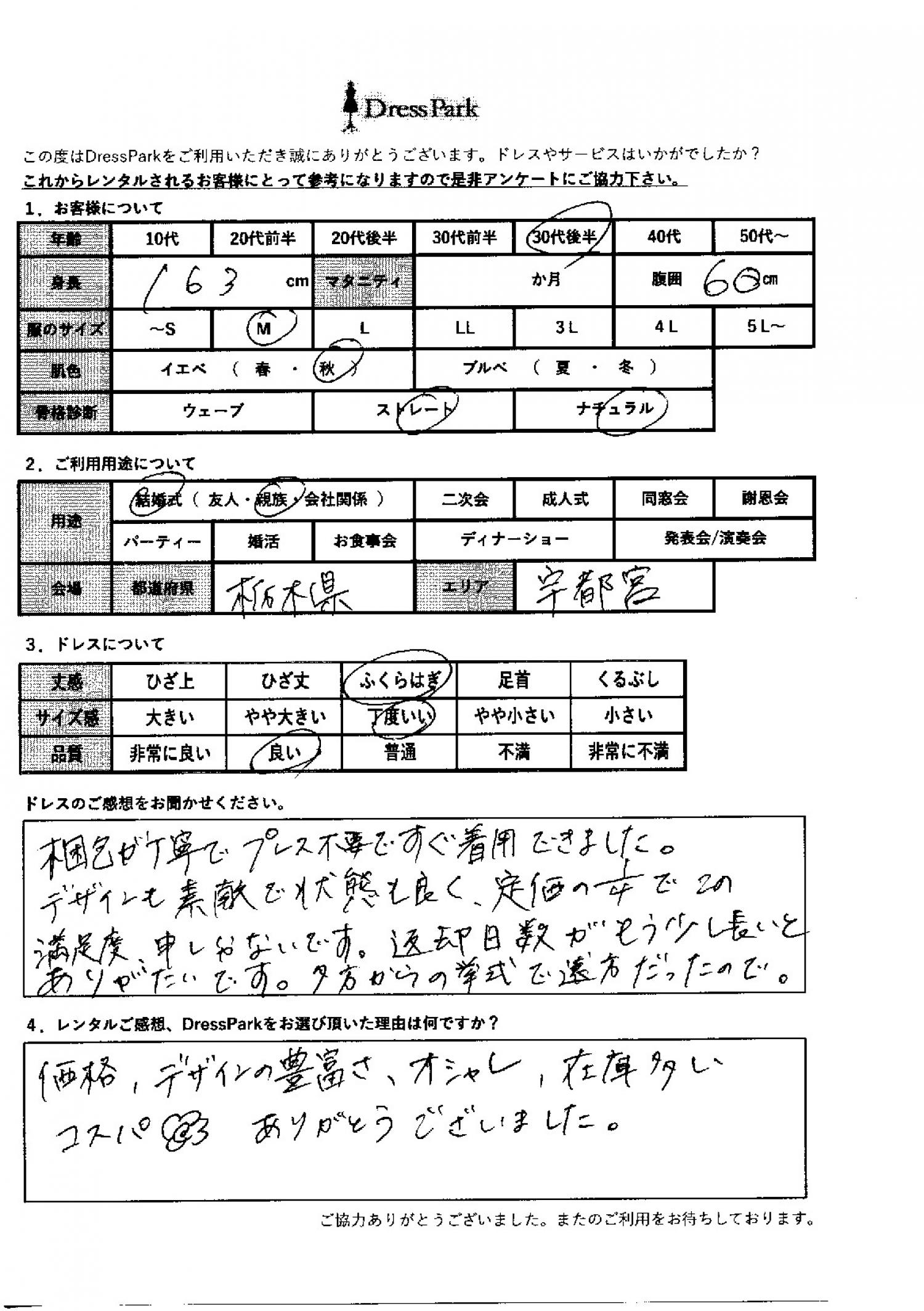 梱包が丁寧で、プレス不要ですぐ着用できました。デザインも素敵で状態も良く、定価の4分の1でこの満足度、申し分ないです。返却日数がもう少し長いとありがたいです。夕方からの挙式で遠方だったので。【スタッフより】