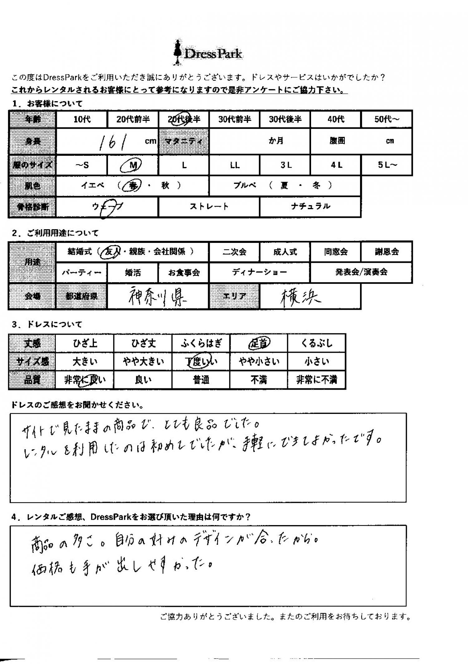 神奈川県 M.K様161㎝ Mサイズ横浜・みなとみらい #20代#M/L#160~164㎝#結婚式(友人)#神奈川県#横浜・みなとみらい ◆レンタルしたドレスはこちら ◆レンタルしたサイズは:M ◆レンタルした日付:2025/11/22 ドレスの着用感 ◆点数: (5点) ◆丈感:足首 ◆サイズ感:丁度いい ◆品質:非常に良い ◆肌色:イエベ ◆骨格診断:ウェーブ ドレスの感想 サイトで見たままの商品で、とても良品でした。レンタルを利用したのは初めてでしたが、手軽にできてよかったです。 レンタルのご感想、DressParkをお選び頂いた理由 商品の多さ。自分の好みのデザインがあったから。価格も手が出しやすかった。 CUSTOMER REVIEWS お客様の声 気になるカテゴリー別にご利用の感想をチェック! ◆AGE 年代で見る 10代 20代 30代 40代 50代~ ◆SIZE サイズで見る SS/S M/L 大きいサイズLL~ ◆HIGHT 身長で見る 140~149㎝ 150~154㎝ 155~159㎝ 160~164㎝ 165~169㎝ 170㎝以上 ◆マタニティ ~3か月 4~6か月 7~8か月 9~10か月 ◆肌色 イエベ ブルべ ◆骨格診断 ウェーブ ストレート ナチュラル ◆利用シーン 結婚式(友人) 結婚式(親族) 結婚式(会社関係) 二次会 成人式 謝恩会 パーティー その他 CUSTOMER REVIEWS都道府県別お客様の声 都道府県別にのお客様の声をチェック! 北海道 青森県 岩手県 宮城県 秋田県 山形県 福島県 茨城県 栃木県 群馬県 埼玉県 千葉県 東京都 神奈川県 新潟県 富山県 石川県 福井県 山梨県 長野県 岐阜県 静岡県 愛知県 三重県 滋賀県 京都府 大阪府 兵庫県 奈良県 和歌山県 鳥取県 島根県 岡山県 広島県 山口県 徳島県 香川県 愛媛県 高知県 福岡県 佐賀県 長崎県 熊本県 大分県 宮崎県 鹿児島県 沖縄県 CUSTOMER REVIEWSエリア別お客様の声 都道府県別にのお客様の声をチェック! 札幌 仙台 名古屋 軽井沢 金沢 神戸・芦屋 博多 那覇 梅田・新大阪 難波・心斎橋 鎌倉・湘南 横浜・みなとみらい 舞浜・浦安・幕張 大宮・浦和 青山・表参道 六本木・麻布 渋谷・恵比寿 新宿 池袋 銀座・丸の内 お台場・汐留 鹿児島市 郡山市 福島市 東予 甲府・石和 LINEでお問い合わせ このサイトではJavaScriptを使用しています