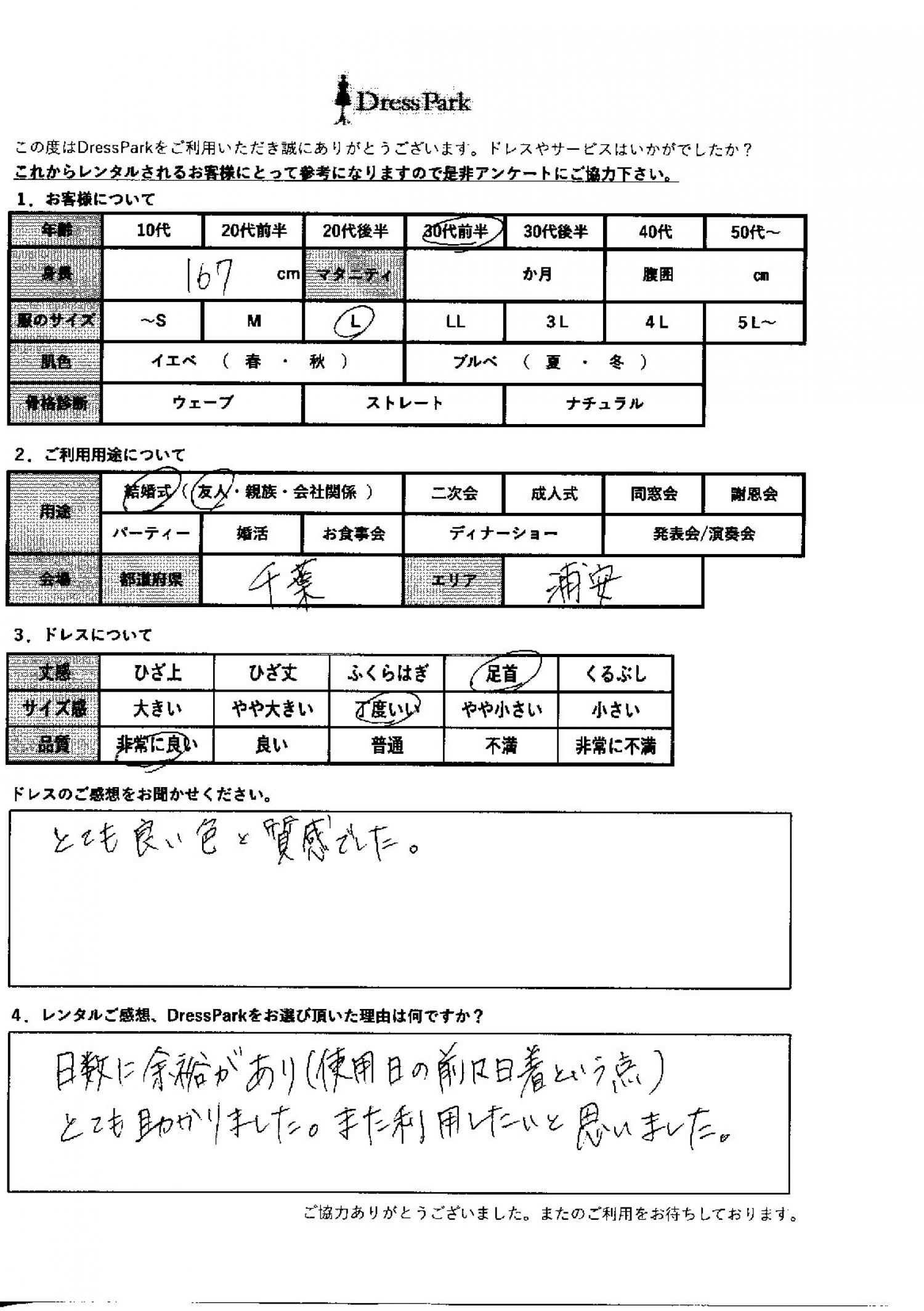 千葉県 Y.I様167㎝ Lサイズ舞浜・浦安・幕張 #30代#M/L#165~169㎝#結婚式(友人)#千葉県#舞浜・浦安・幕張 ◆レンタルしたドレスはこちら ◆レンタルしたサイズは:L ◆レンタルした日付:2025/11/22 ドレスの着用感 ◆点数: (5点) ◆丈感:足首 ◆サイズ感:丁度いい ◆品質:非常に良い ドレスの感想 とても良い色×質感でした。 レンタルのご感想、DressParkをお選び頂いた理由 日数に余裕があり、(使用日の前々日着という点)とても助かりました。また利用したいと思いました。 CUSTOMER REVIEWS お客様の声 気になるカテゴリー別にご利用の感想をチェック! ◆AGE 年代で見る 10代 20代 30代 40代 50代~ ◆SIZE サイズで見る SS/S M/L 大きいサイズLL~ ◆HIGHT 身長で見る 140~149㎝ 150~154㎝ 155~159㎝ 160~164㎝ 165~169㎝ 170㎝以上 ◆マタニティ ~3か月 4~6か月 7~8か月 9~10か月 ◆肌色 イエベ ブルべ ◆骨格診断 ウェーブ ストレート ナチュラル ◆利用シーン 結婚式(友人) 結婚式(親族) 結婚式(会社関係) 二次会 成人式 謝恩会 パーティー その他 CUSTOMER REVIEWS都道府県別お客様の声 都道府県別にのお客様の声をチェック! 北海道 青森県 岩手県 宮城県 秋田県 山形県 福島県 茨城県 栃木県 群馬県 埼玉県 千葉県 東京都 神奈川県 新潟県 富山県 石川県 福井県 山梨県 長野県 岐阜県 静岡県 愛知県 三重県 滋賀県 京都府 大阪府 兵庫県 奈良県 和歌山県 鳥取県 島根県 岡山県 広島県 山口県 徳島県 香川県 愛媛県 高知県 福岡県 佐賀県 長崎県 熊本県 大分県 宮崎県 鹿児島県 沖縄県 CUSTOMER REVIEWSエリア別お客様の声 都道府県別にのお客様の声をチェック! 札幌 仙台 名古屋 軽井沢 金沢 神戸・芦屋 博多 那覇 梅田・新大阪 難波・心斎橋 鎌倉・湘南 横浜・みなとみらい 舞浜・浦安・幕張 大宮・浦和 青山・表参道 六本木・麻布 渋谷・恵比寿 新宿 池袋 銀座・丸の内 お台場・汐留 鹿児島市 郡山市 福島市 東予 甲府・石和 LINEでお問い合わせ このサイトではJavaScriptを使用しています