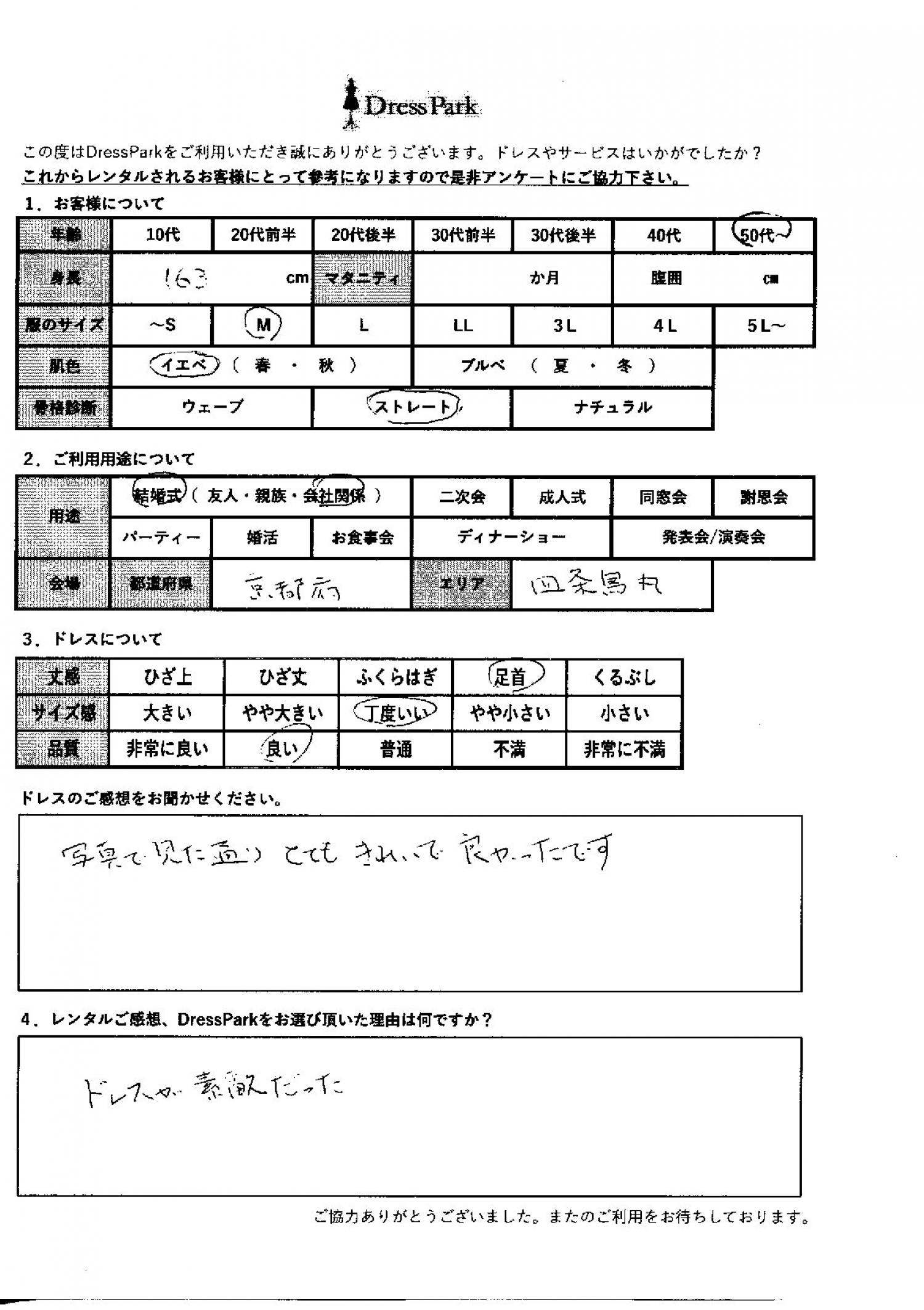 京都府 S.K様163㎝ Mサイズ #50代~#M/L#160~164㎝#結婚式(会社関係)#京都府 ◆レンタルしたドレスはこちら ◆レンタルしたサイズは:M ◆レンタルした日付:2025/11/22 ドレスの着用感 ◆点数: (5点) ◆丈感:足首 ◆サイズ感:丁度いい ◆品質:良い ◆肌色:イエベ ◆骨格診断:ストレート ドレスの感想 写真で見た通りとても綺麗でよかったです。 レンタルのご感想、DressParkをお選び頂いた理由 ドレスが素敵だった。 CUSTOMER REVIEWS お客様の声 気になるカテゴリー別にご利用の感想をチェック! ◆AGE 年代で見る 10代 20代 30代 40代 50代~ ◆SIZE サイズで見る SS/S M/L 大きいサイズLL~ ◆HIGHT 身長で見る 140~149㎝ 150~154㎝ 155~159㎝ 160~164㎝ 165~169㎝ 170㎝以上 ◆マタニティ ~3か月 4~6か月 7~8か月 9~10か月 ◆肌色 イエベ ブルべ ◆骨格診断 ウェーブ ストレート ナチュラル ◆利用シーン 結婚式(友人) 結婚式(親族) 結婚式(会社関係) 二次会 成人式 謝恩会 パーティー その他 CUSTOMER REVIEWS都道府県別お客様の声 都道府県別にのお客様の声をチェック! 北海道 青森県 岩手県 宮城県 秋田県 山形県 福島県 茨城県 栃木県 群馬県 埼玉県 千葉県 東京都 神奈川県 新潟県 富山県 石川県 福井県 山梨県 長野県 岐阜県 静岡県 愛知県 三重県 滋賀県 京都府 大阪府 兵庫県 奈良県 和歌山県 鳥取県 島根県 岡山県 広島県 山口県 徳島県 香川県 愛媛県 高知県 福岡県 佐賀県 長崎県 熊本県 大分県 宮崎県 鹿児島県 沖縄県 CUSTOMER REVIEWSエリア別お客様の声 都道府県別にのお客様の声をチェック! 札幌 仙台 名古屋 軽井沢 金沢 神戸・芦屋 博多 那覇 梅田・新大阪 難波・心斎橋 鎌倉・湘南 横浜・みなとみらい 舞浜・浦安・幕張 大宮・浦和 青山・表参道 六本木・麻布 渋谷・恵比寿 新宿 池袋 銀座・丸の内 お台場・汐留 鹿児島市 郡山市 福島市 東予 甲府・石和 LINEでお問い合わせ このサイトではJavaScriptを使用しています