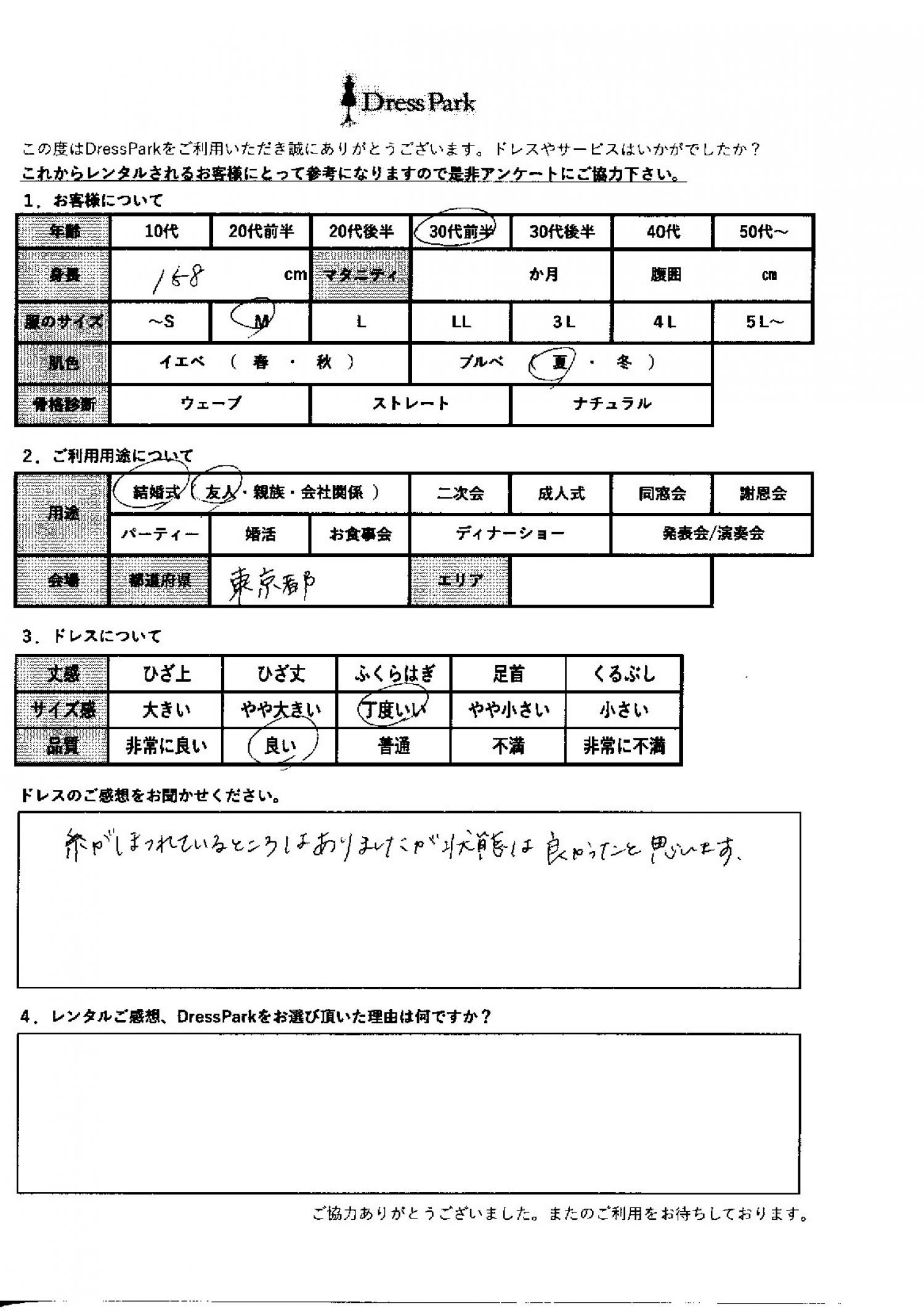 東京都 H.S様158㎝ Mサイズ #30代#M/L#155~159㎝#結婚式(友人)#東京都 ◆レンタルしたドレスはこちら ◆レンタルしたサイズは:M ◆レンタルした日付:2025/11/22 ドレスの着用感 ◆点数: (4点) ◆丈感:足首 ◆サイズ感:丁度いい ◆品質:良い ◆肌色:ブルべ ドレスの感想 糸がほつれているところはありましたが、状態は良かったと思います。 CUSTOMER REVIEWS お客様の声 気になるカテゴリー別にご利用の感想をチェック! ◆AGE 年代で見る 10代 20代 30代 40代 50代~ ◆SIZE サイズで見る SS/S M/L 大きいサイズLL~ ◆HIGHT 身長で見る 140~149㎝ 150~154㎝ 155~159㎝ 160~164㎝ 165~169㎝ 170㎝以上 ◆マタニティ ~3か月 4~6か月 7~8か月 9~10か月 ◆肌色 イエベ ブルべ ◆骨格診断 ウェーブ ストレート ナチュラル ◆利用シーン 結婚式(友人) 結婚式(親族) 結婚式(会社関係) 二次会 成人式 謝恩会 パーティー その他 CUSTOMER REVIEWS都道府県別お客様の声 都道府県別にのお客様の声をチェック! 北海道 青森県 岩手県 宮城県 秋田県 山形県 福島県 茨城県 栃木県 群馬県 埼玉県 千葉県 東京都 神奈川県 新潟県 富山県 石川県 福井県 山梨県 長野県 岐阜県 静岡県 愛知県 三重県 滋賀県 京都府 大阪府 兵庫県 奈良県 和歌山県 鳥取県 島根県 岡山県 広島県 山口県 徳島県 香川県 愛媛県 高知県 福岡県 佐賀県 長崎県 熊本県 大分県 宮崎県 鹿児島県 沖縄県 CUSTOMER REVIEWSエリア別お客様の声 都道府県別にのお客様の声をチェック! 札幌 仙台 名古屋 軽井沢 金沢 神戸・芦屋 博多 那覇 梅田・新大阪 難波・心斎橋 鎌倉・湘南 横浜・みなとみらい 舞浜・浦安・幕張 大宮・浦和 青山・表参道 六本木・麻布 渋谷・恵比寿 新宿 池袋 銀座・丸の内 お台場・汐留 鹿児島市 郡山市 福島市 東予 甲府・石和 LINEでお問い合わせ このサイトではJavaScriptを使用しています
