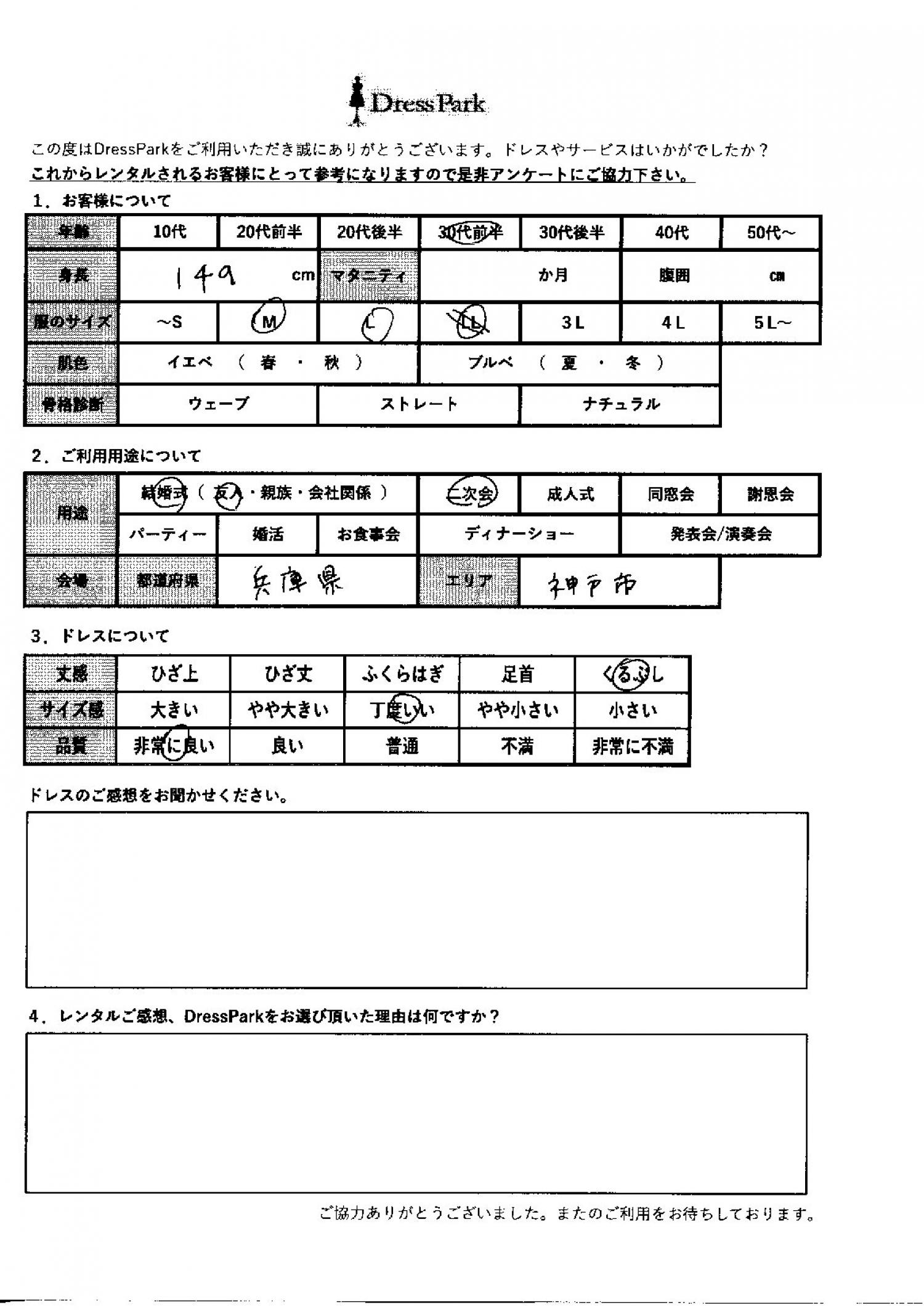 兵庫県 M.K様149㎝ Lサイズ神戸・芦屋