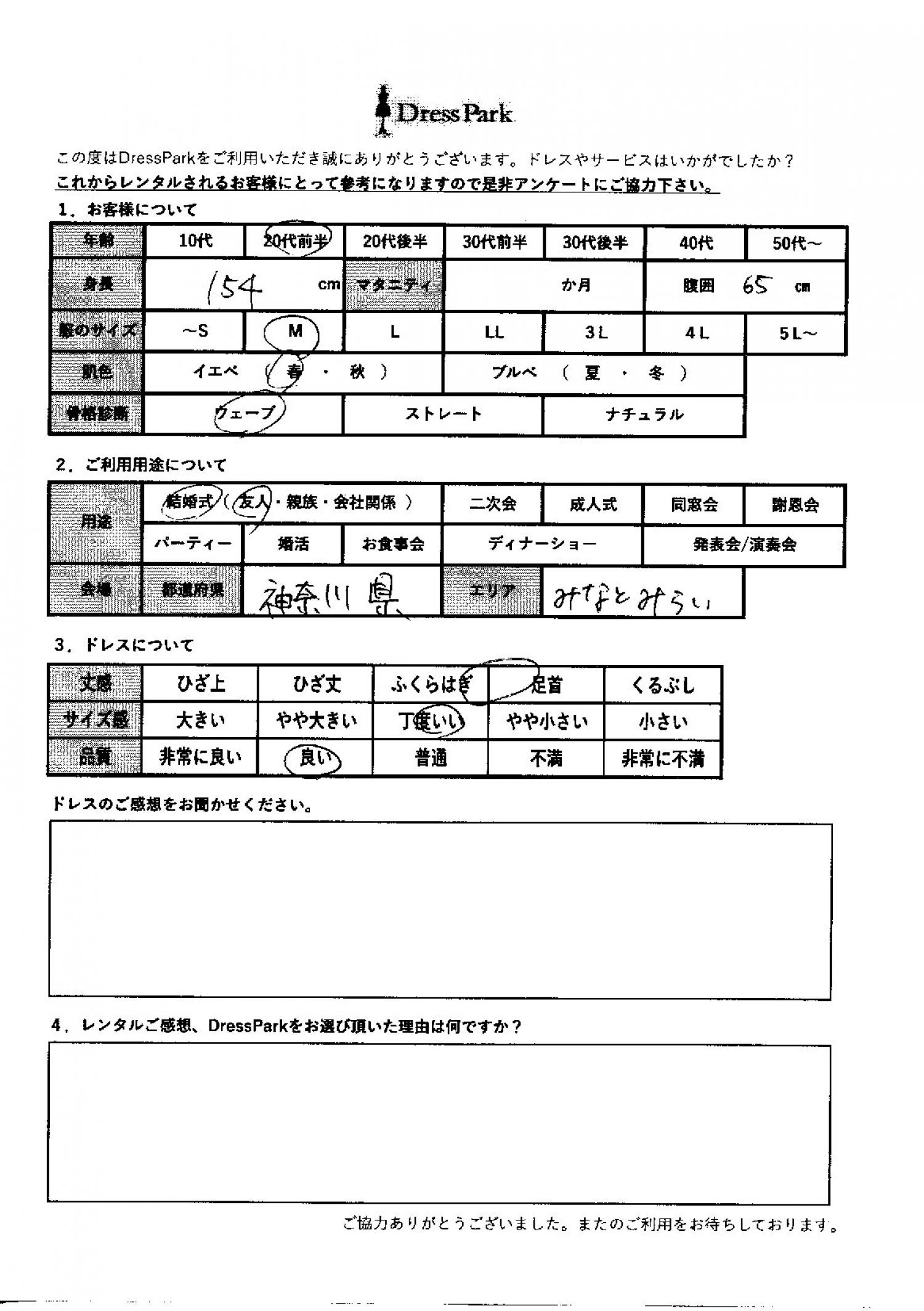 神奈川県 K.S様154㎝ Mサイズ横浜・みなとみらい