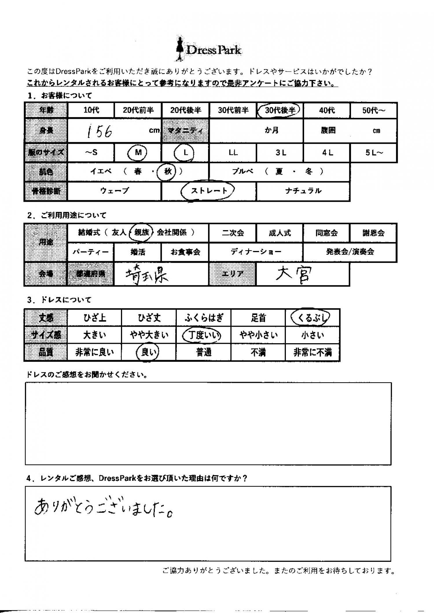 埼玉県 N.M様156㎝ Mサイズ大宮・浦和 #20代#M/L#155~159㎝#結婚式(親族)#埼玉県#大宮・浦和 ◆レンタルしたドレスはこちら ◆レンタルしたサイズは:M ◆レンタルした日付:2025/11/23 ドレスの着用感 ◆点数: (4点) ◆丈感:くるぶし ◆サイズ感:丁度いい ◆品質:良い ◆肌色:イエベ ◆骨格診断:ストレート レンタルのご感想、DressParkをお選び頂いた理由 ありがとうございました。 CUSTOMER REVIEWS お客様の声 気になるカテゴリー別にご利用の感想をチェック! ◆AGE 年代で見る 10代 20代 30代 40代 50代~ ◆SIZE サイズで見る SS/S M/L 大きいサイズLL~ ◆HIGHT 身長で見る 140~149㎝ 150~154㎝ 155~159㎝ 160~164㎝ 165~169㎝ 170㎝以上 ◆マタニティ ~3か月 4~6か月 7~8か月 9~10か月 ◆肌色 イエベ ブルべ ◆骨格診断 ウェーブ ストレート ナチュラル ◆利用シーン 結婚式(友人) 結婚式(親族) 結婚式(会社関係) 二次会 成人式 謝恩会 パーティー その他 CUSTOMER REVIEWS都道府県別お客様の声 都道府県別にのお客様の声をチェック! 北海道 青森県 岩手県 宮城県 秋田県 山形県 福島県 茨城県 栃木県 群馬県 埼玉県 千葉県 東京都 神奈川県 新潟県 富山県 石川県 福井県 山梨県 長野県 岐阜県 静岡県 愛知県 三重県 滋賀県 京都府 大阪府 兵庫県 奈良県 和歌山県 鳥取県 島根県 岡山県 広島県 山口県 徳島県 香川県 愛媛県 高知県 福岡県 佐賀県 長崎県 熊本県 大分県 宮崎県 鹿児島県 沖縄県 CUSTOMER REVIEWSエリア別お客様の声 都道府県別にのお客様の声をチェック! 札幌 仙台 名古屋 軽井沢 金沢 神戸・芦屋 博多 那覇 梅田・新大阪 難波・心斎橋 鎌倉・湘南 横浜・みなとみらい 舞浜・浦安・幕張 大宮・浦和 青山・表参道 六本木・麻布 渋谷・恵比寿 新宿 池袋 銀座・丸の内 お台場・汐留 鹿児島市 郡山市 福島市 東予 甲府・石和 LINEでお問い合わせ このサイトではJavaScriptを使用しています