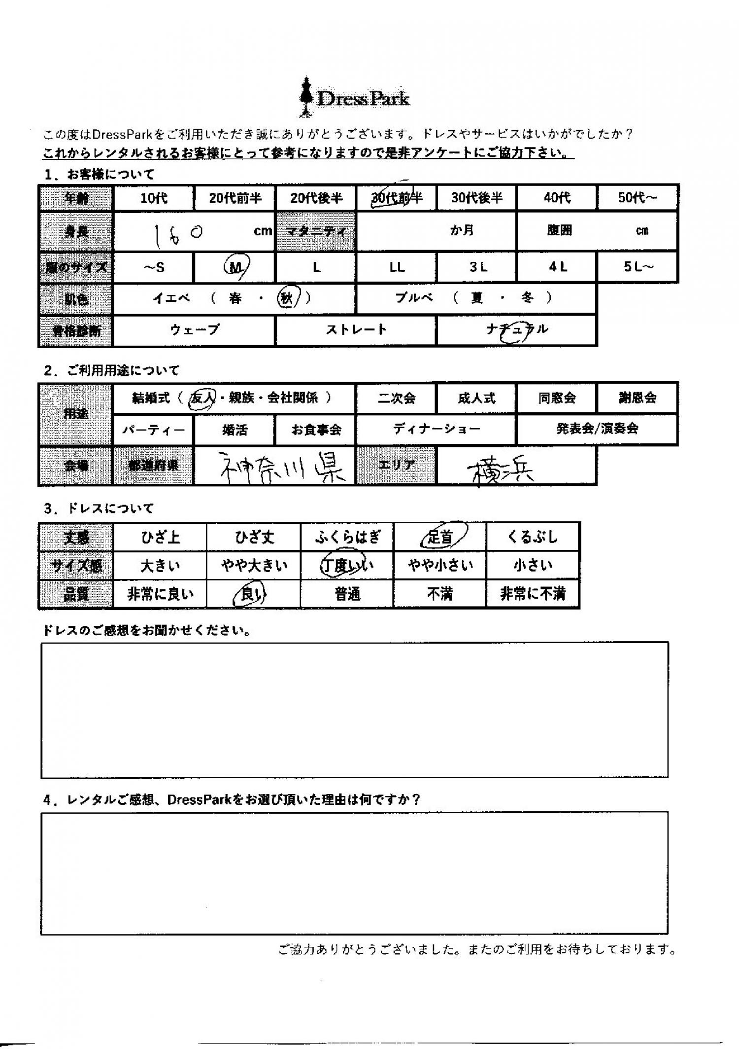 神奈川県 S.O様160㎝ Mサイズ横浜・みなとみらい