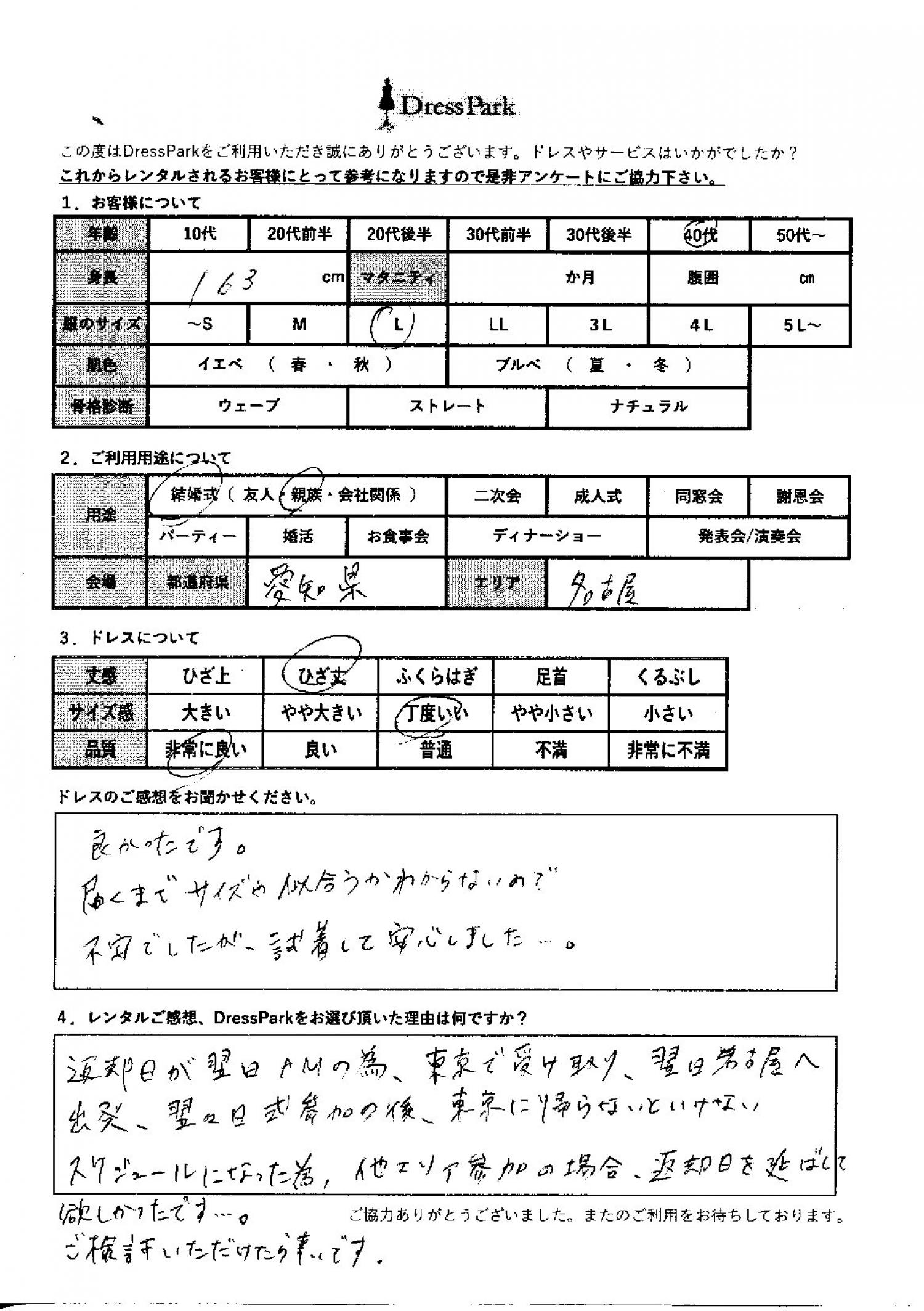 愛知県 A.O様163㎝ Lサイズ名古屋
