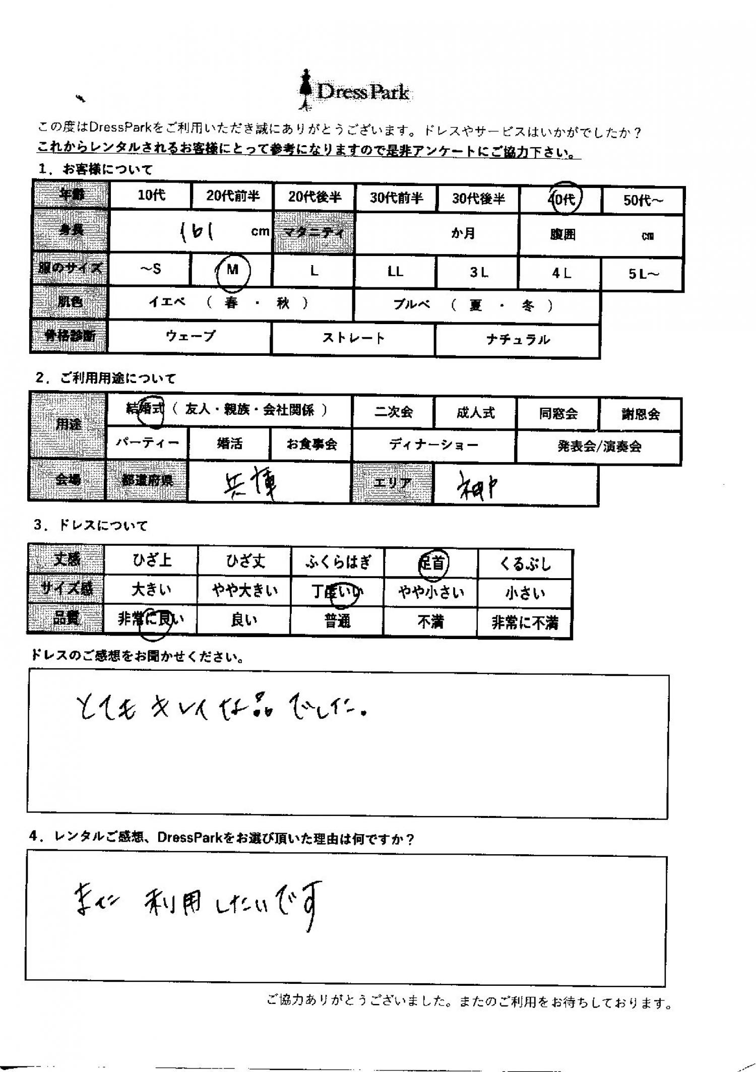 兵庫県 M.K様161㎝ Mサイズ神戸・芦屋 #40代#M/L#160~164㎝#結婚式(友人)#兵庫県#神戸・芦屋 ◆レンタルしたドレスはこちら ◆レンタルしたサイズは:M ◆レンタルした日付:2025/11/29 ドレスの着用感 ◆点数: (5点) ◆丈感:足首 ◆サイズ感:丁度いい ◆品質:非常に良い ドレスの感想 とてもきれいな品でした。 レンタルのご感想、DressParkをお選び頂いた理由 また利用したいです。 CUSTOMER REVIEWS お客様の声 気になるカテゴリー別にご利用の感想をチェック! ◆AGE 年代で見る 10代 20代 30代 40代 50代~ ◆SIZE サイズで見る SS/S M/L 大きいサイズLL~ ◆HIGHT 身長で見る 140~149㎝ 150~154㎝ 155~159㎝ 160~164㎝ 165~169㎝ 170㎝以上 ◆マタニティ ~3か月 4~6か月 7~8か月 9~10か月 ◆肌色 イエベ ブルべ ◆骨格診断 ウェーブ ストレート ナチュラル ◆利用シーン 結婚式(友人) 結婚式(親族) 結婚式(会社関係) 二次会 成人式 謝恩会 パーティー その他 CUSTOMER REVIEWS都道府県別お客様の声 都道府県別にのお客様の声をチェック! 北海道 青森県 岩手県 宮城県 秋田県 山形県 福島県 茨城県 栃木県 群馬県 埼玉県 千葉県 東京都 神奈川県 新潟県 富山県 石川県 福井県 山梨県 長野県 岐阜県 静岡県 愛知県 三重県 滋賀県 京都府 大阪府 兵庫県 奈良県 和歌山県 鳥取県 島根県 岡山県 広島県 山口県 徳島県 香川県 愛媛県 高知県 福岡県 佐賀県 長崎県 熊本県 大分県 宮崎県 鹿児島県 沖縄県 CUSTOMER REVIEWSエリア別お客様の声 都道府県別にのお客様の声をチェック! 札幌 仙台 名古屋 軽井沢 金沢 神戸・芦屋 博多 那覇 梅田・新大阪 難波・心斎橋 鎌倉・湘南 横浜・みなとみらい 舞浜・浦安・幕張 大宮・浦和 青山・表参道 六本木・麻布 渋谷・恵比寿 新宿 池袋 銀座・丸の内 お台場・汐留 鹿児島市 郡山市 福島市 東予 甲府・石和 LINEでお問い合わせ このサイトではJavaScriptを使用しています