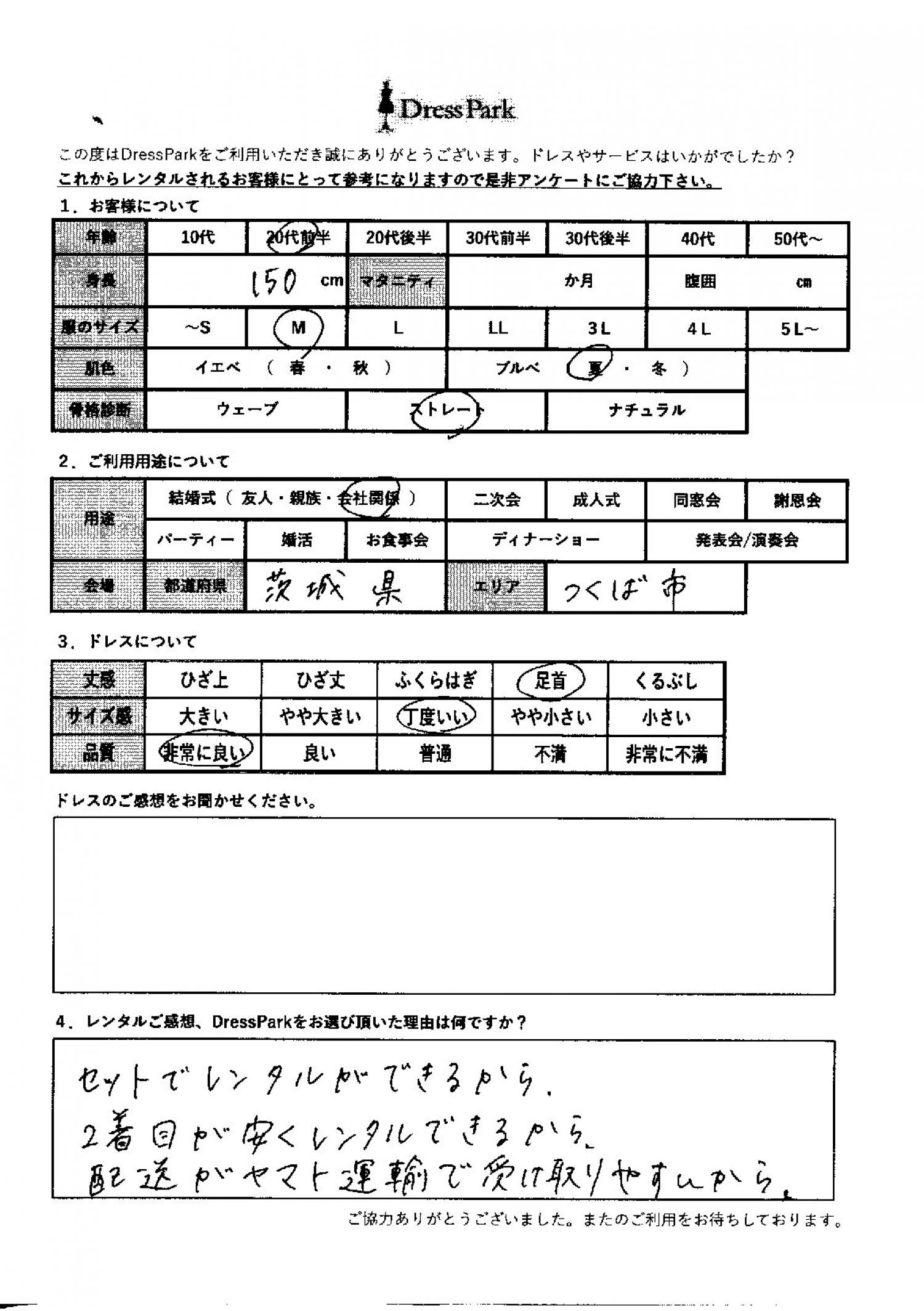茨城県 M.H様150㎝ Mサイズ #20代#M/L#150~154㎝#結婚式(会社関係)#茨城県 ◆レンタルしたドレスはこちら ◆レンタルしたサイズは:M ◆レンタルした日付:2025/11/23 ドレスの着用感 ◆点数: (5点) ◆丈感:足首 ◆サイズ感:丁度いい ◆品質:非常に良い ◆肌色:ブルべ ◆骨格診断:ストレート レンタルのご感想、DressParkをお選び頂いた理由 セットでレンタルができるから。2着目が安くレンタルできるから。配送がヤマト運輸で受け取りやすいから。 CUSTOMER REVIEWS お客様の声 気になるカテゴリー別にご利用の感想をチェック! ◆AGE 年代で見る 10代 20代 30代 40代 50代~ ◆SIZE サイズで見る SS/S M/L 大きいサイズLL~ ◆HIGHT 身長で見る 140~149㎝ 150~154㎝ 155~159㎝ 160~164㎝ 165~169㎝ 170㎝以上 ◆マタニティ ~3か月 4~6か月 7~8か月 9~10か月 ◆肌色 イエベ ブルべ ◆骨格診断 ウェーブ ストレート ナチュラル ◆利用シーン 結婚式(友人) 結婚式(親族) 結婚式(会社関係) 二次会 成人式 謝恩会 パーティー その他 CUSTOMER REVIEWS都道府県別お客様の声 都道府県別にのお客様の声をチェック! 北海道 青森県 岩手県 宮城県 秋田県 山形県 福島県 茨城県 栃木県 群馬県 埼玉県 千葉県 東京都 神奈川県 新潟県 富山県 石川県 福井県 山梨県 長野県 岐阜県 静岡県 愛知県 三重県 滋賀県 京都府 大阪府 兵庫県 奈良県 和歌山県 鳥取県 島根県 岡山県 広島県 山口県 徳島県 香川県 愛媛県 高知県 福岡県 佐賀県 長崎県 熊本県 大分県 宮崎県 鹿児島県 沖縄県 CUSTOMER REVIEWSエリア別お客様の声 都道府県別にのお客様の声をチェック! 札幌 仙台 名古屋 軽井沢 金沢 神戸・芦屋 博多 那覇 梅田・新大阪 難波・心斎橋 鎌倉・湘南 横浜・みなとみらい 舞浜・浦安・幕張 大宮・浦和 青山・表参道 六本木・麻布 渋谷・恵比寿 新宿 池袋 銀座・丸の内 お台場・汐留 鹿児島市 郡山市 福島市 東予 甲府・石和 LINEでお問い合わせ このサイトではJavaScriptを使用しています