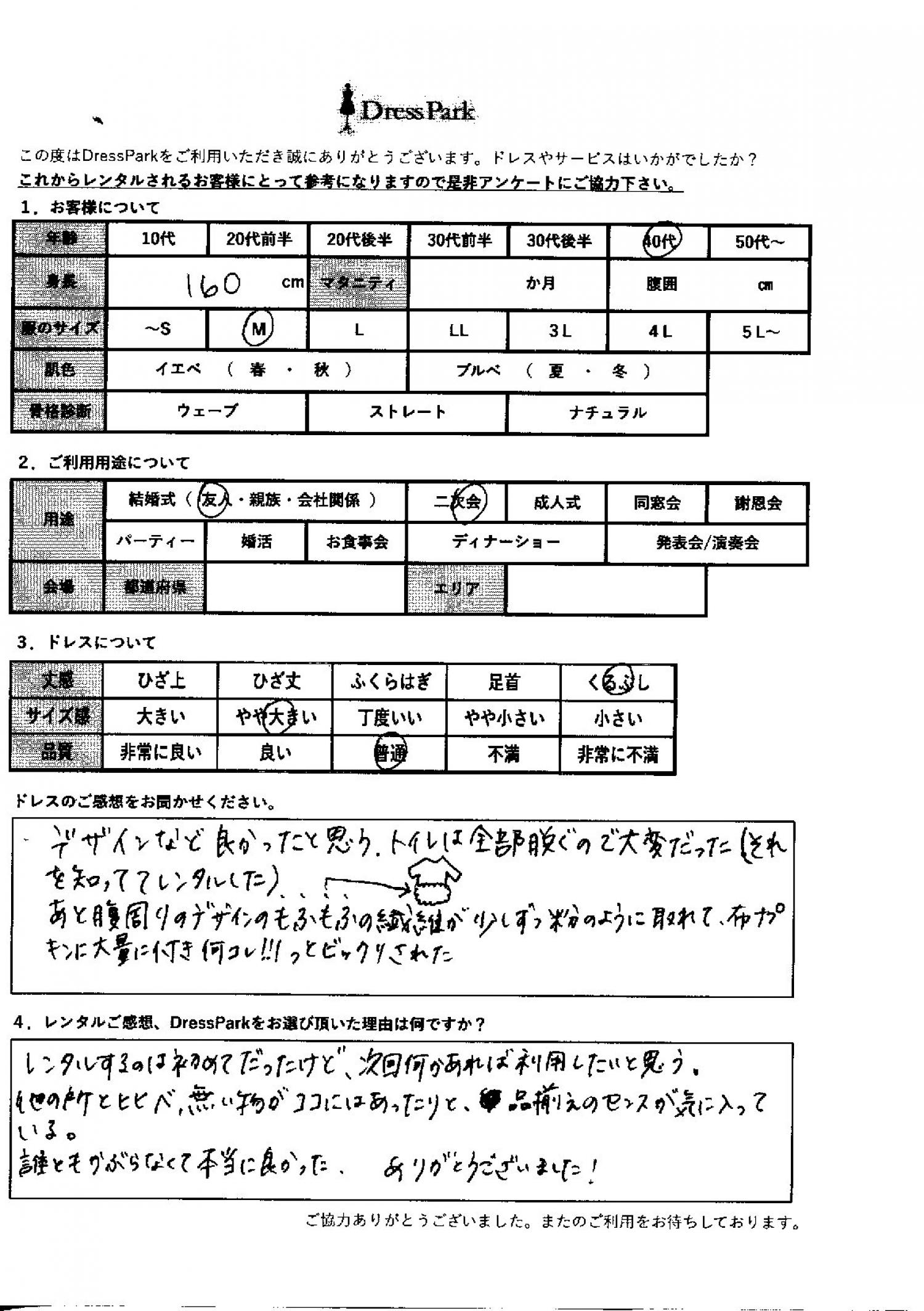 デザインなど良かったと思う。トイレは全部脱ぐので大変だった。(それを知ってレンタルした)あと腹回りのデザインのモフモフの繊維が少しずつ粉のように取れて布ナプキンに大量につき何これ!とびっくりされた。