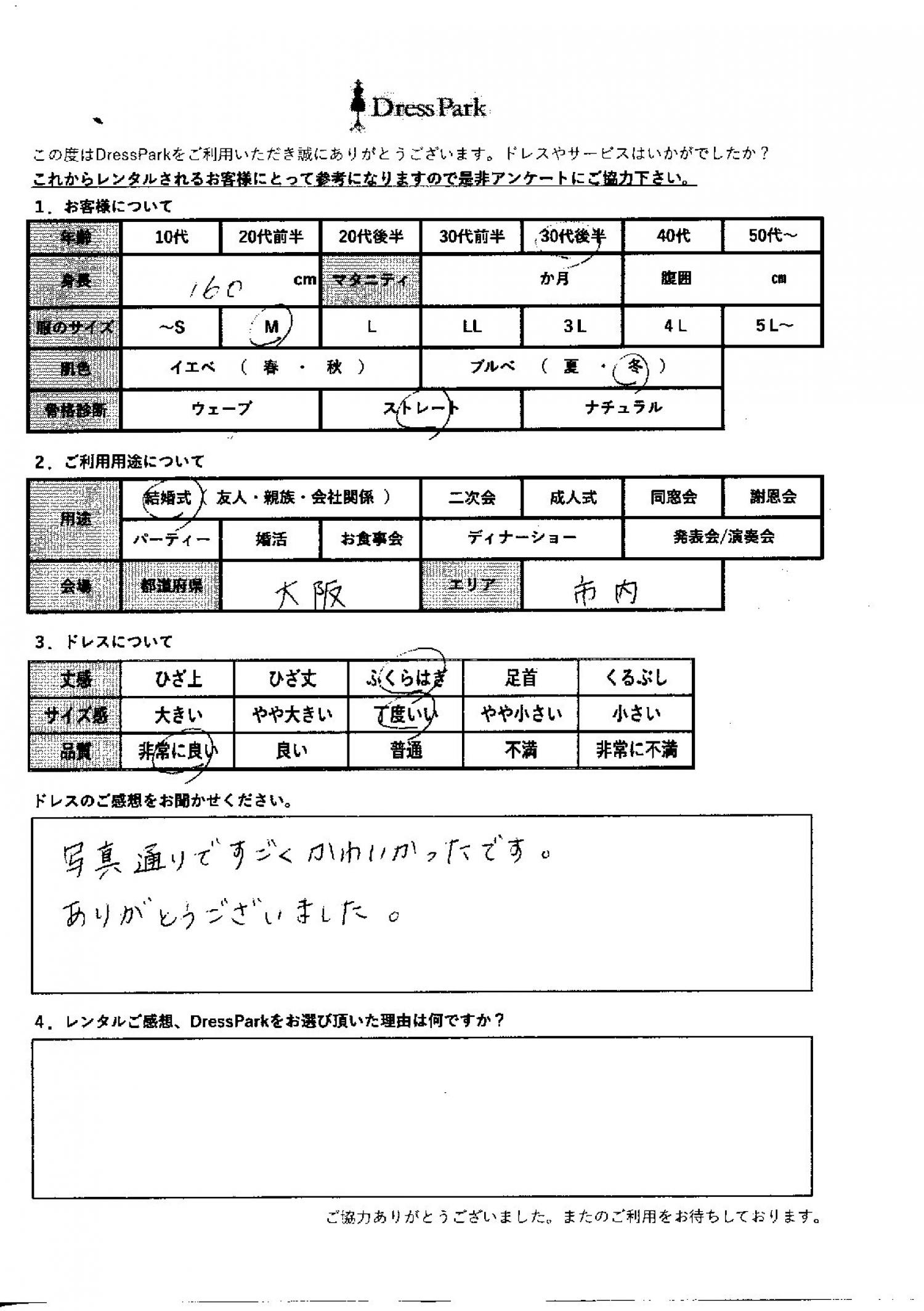 大阪府 M.H様160㎝ Mサイズ #30代#M/L#160~164㎝#結婚式(友人)#大阪府 ◆レンタルしたドレスはこちら ◆レンタルしたサイズは:M ◆レンタルした日付:2025/12/06 ドレスの着用感 ◆点数: (5点) ◆丈感:ふくらはぎ ◆サイズ感:丁度いい ◆品質:非常に良い ◆肌色:ブルべ ◆骨格診断:ストレート ドレスの感想 写真通りですごく可愛かったです。ありがとうございました。 CUSTOMER REVIEWS お客様の声 気になるカテゴリー別にご利用の感想をチェック! ◆AGE 年代で見る 10代 20代 30代 40代 50代~ ◆SIZE サイズで見る SS/S M/L 大きいサイズLL~ ◆HIGHT 身長で見る 140~149㎝ 150~154㎝ 155~159㎝ 160~164㎝ 165~169㎝ 170㎝以上 ◆マタニティ ~3か月 4~6か月 7~8か月 9~10か月 ◆肌色 イエベ ブルべ ◆骨格診断 ウェーブ ストレート ナチュラル ◆利用シーン 結婚式(友人) 結婚式(親族) 結婚式(会社関係) 二次会 成人式 謝恩会 パーティー その他 CUSTOMER REVIEWS都道府県別お客様の声 都道府県別にのお客様の声をチェック! 北海道 青森県 岩手県 宮城県 秋田県 山形県 福島県 茨城県 栃木県 群馬県 埼玉県 千葉県 東京都 神奈川県 新潟県 富山県 石川県 福井県 山梨県 長野県 岐阜県 静岡県 愛知県 三重県 滋賀県 京都府 大阪府 兵庫県 奈良県 和歌山県 鳥取県 島根県 岡山県 広島県 山口県 徳島県 香川県 愛媛県 高知県 福岡県 佐賀県 長崎県 熊本県 大分県 宮崎県 鹿児島県 沖縄県 CUSTOMER REVIEWSエリア別お客様の声 都道府県別にのお客様の声をチェック! 札幌 仙台 名古屋 軽井沢 金沢 神戸・芦屋 博多 那覇 梅田・新大阪 難波・心斎橋 鎌倉・湘南 横浜・みなとみらい 舞浜・浦安・幕張 大宮・浦和 青山・表参道 六本木・麻布 渋谷・恵比寿 新宿 池袋 銀座・丸の内 お台場・汐留 鹿児島市 郡山市 福島市 東予 甲府・石和 LINEでお問い合わせ このサイトではJavaScriptを使用しています