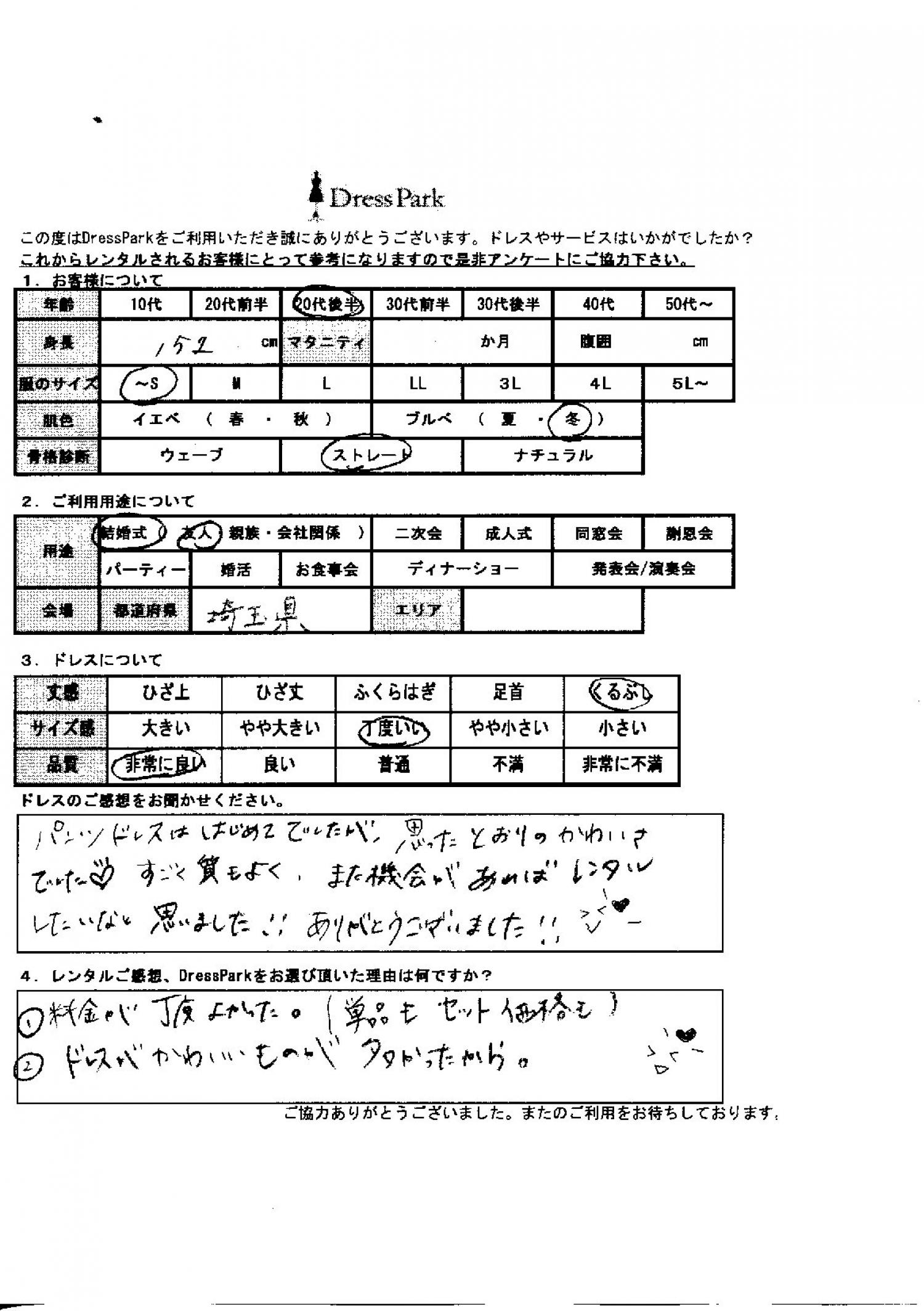 埼玉県 U.Y様152㎝ ~Sサイズ #20代#SS/S#150~154㎝#結婚式(友人)#埼玉県 ◆レンタルしたドレスはこちら ◆レンタルしたサイズは:S ◆レンタルした日付:2025/12/06 ドレスの着用感 ◆点数: (5点) ◆丈感:くるぶし ◆サイズ感:丁度いい ◆品質:非常に良い ◆肌色:ブルべ ◆骨格診断:ストレート ドレスの感想 パンツドレスは初めてでしたが、思った通りの可愛さでした。すごく質も良く、また機会があればレンタルしたいと思いました!ありがとうございました!! レンタルのご感想、DressParkをお選び頂いた理由 料金がちょうどよかった。(単品もセット価格も)ドレスがかわいいものが多かったから。 CUSTOMER REVIEWS お客様の声 気になるカテゴリー別にご利用の感想をチェック! ◆AGE 年代で見る 10代 20代 30代 40代 50代~ ◆SIZE サイズで見る SS/S M/L 大きいサイズLL~ ◆HIGHT 身長で見る 140~149㎝ 150~154㎝ 155~159㎝ 160~164㎝ 165~169㎝ 170㎝以上 ◆マタニティ ~3か月 4~6か月 7~8か月 9~10か月 ◆肌色 イエベ ブルべ ◆骨格診断 ウェーブ ストレート ナチュラル ◆利用シーン 結婚式(友人) 結婚式(親族) 結婚式(会社関係) 二次会 成人式 謝恩会 パーティー その他 CUSTOMER REVIEWS都道府県別お客様の声 都道府県別にのお客様の声をチェック! 北海道 青森県 岩手県 宮城県 秋田県 山形県 福島県 茨城県 栃木県 群馬県 埼玉県 千葉県 東京都 神奈川県 新潟県 富山県 石川県 福井県 山梨県 長野県 岐阜県 静岡県 愛知県 三重県 滋賀県 京都府 大阪府 兵庫県 奈良県 和歌山県 鳥取県 島根県 岡山県 広島県 山口県 徳島県 香川県 愛媛県 高知県 福岡県 佐賀県 長崎県 熊本県 大分県 宮崎県 鹿児島県 沖縄県 CUSTOMER REVIEWSエリア別お客様の声 都道府県別にのお客様の声をチェック! 札幌 仙台 名古屋 軽井沢 金沢 神戸・芦屋 博多 那覇 梅田・新大阪 難波・心斎橋 鎌倉・湘南 横浜・みなとみらい 舞浜・浦安・幕張 大宮・浦和 青山・表参道 六本木・麻布 渋谷・恵比寿 新宿 池袋 銀座・丸の内 お台場・汐留 鹿児島市 郡山市 福島市 東予 甲府・石和 LINEでお問い合わせ このサイトではJavaScriptを使用しています