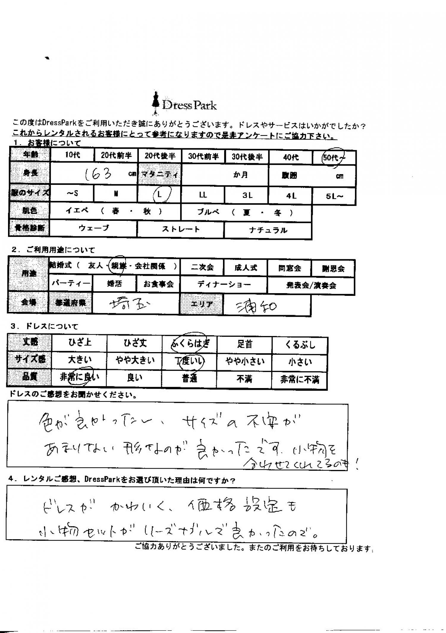 埼玉県 Y.N様163㎝ Lサイズ大宮・浦和 #50代~#M/L#160~164㎝#結婚式(親族)#埼玉県#大宮・浦和 ◆レンタルしたドレスはこちら ◆レンタルしたサイズは:M ◆レンタルした日付:2025/12/06 ドレスの着用感 ◆点数: (5点) ◆丈感:ふくらはぎ ◆サイズ感:丁度いい ◆品質:非常に良い ドレスの感想 色が良かったし、サイズの不安があまりない形なのが良かったです。小物合わせてくれるのも! レンタルのご感想、DressParkをお選び頂いた理由 ドレスが可愛く、価格設定も小物セットがリーズナブルで良かったので。 CUSTOMER REVIEWS お客様の声 気になるカテゴリー別にご利用の感想をチェック! ◆AGE 年代で見る 10代 20代 30代 40代 50代~ ◆SIZE サイズで見る SS/S M/L 大きいサイズLL~ ◆HIGHT 身長で見る 140~149㎝ 150~154㎝ 155~159㎝ 160~164㎝ 165~169㎝ 170㎝以上 ◆マタニティ ~3か月 4~6か月 7~8か月 9~10か月 ◆肌色 イエベ ブルべ ◆骨格診断 ウェーブ ストレート ナチュラル ◆利用シーン 結婚式(友人) 結婚式(親族) 結婚式(会社関係) 二次会 成人式 謝恩会 パーティー その他 CUSTOMER REVIEWS都道府県別お客様の声 都道府県別にのお客様の声をチェック! 北海道 青森県 岩手県 宮城県 秋田県 山形県 福島県 茨城県 栃木県 群馬県 埼玉県 千葉県 東京都 神奈川県 新潟県 富山県 石川県 福井県 山梨県 長野県 岐阜県 静岡県 愛知県 三重県 滋賀県 京都府 大阪府 兵庫県 奈良県 和歌山県 鳥取県 島根県 岡山県 広島県 山口県 徳島県 香川県 愛媛県 高知県 福岡県 佐賀県 長崎県 熊本県 大分県 宮崎県 鹿児島県 沖縄県 CUSTOMER REVIEWSエリア別お客様の声 都道府県別にのお客様の声をチェック! 札幌 仙台 名古屋 軽井沢 金沢 神戸・芦屋 博多 那覇 梅田・新大阪 難波・心斎橋 鎌倉・湘南 横浜・みなとみらい 舞浜・浦安・幕張 大宮・浦和 青山・表参道 六本木・麻布 渋谷・恵比寿 新宿 池袋 銀座・丸の内 お台場・汐留 鹿児島市 郡山市 福島市 東予 甲府・石和 LINEでお問い合わせ このサイトではJavaScriptを使用しています