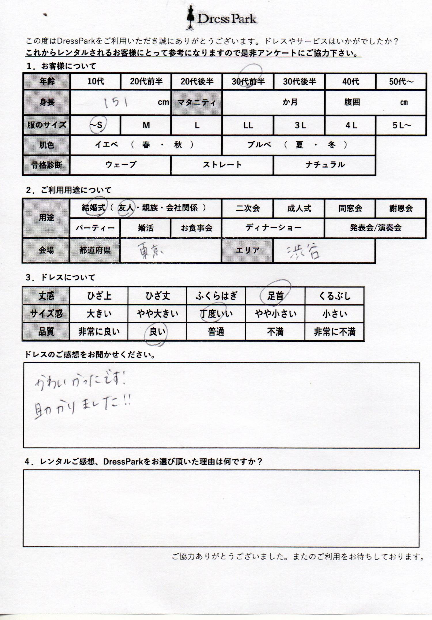 東京都 Y.S様151㎝ ~Sサイズ渋谷・恵比寿