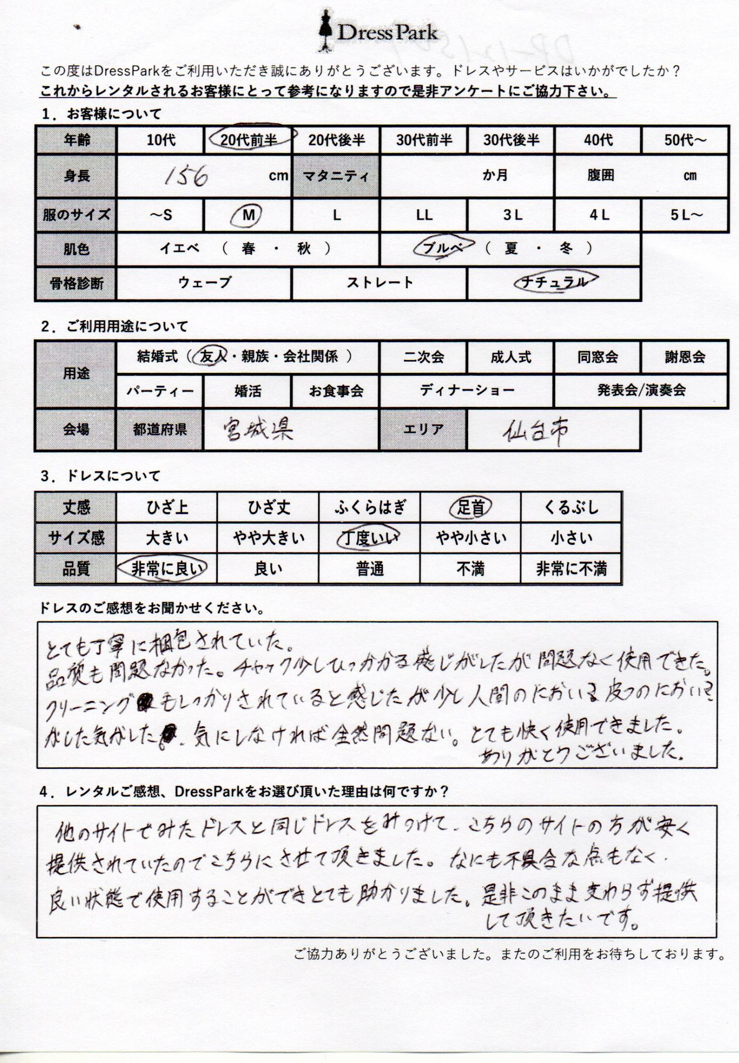 この度はご利用いただきありがとうございました。ドレスの匂いですが、ドライクリーニングの匂いが残っている場合がございます。カバーを外して、風通しの良い場所に掛けておくと解消されますので是非参考にされて下さい。