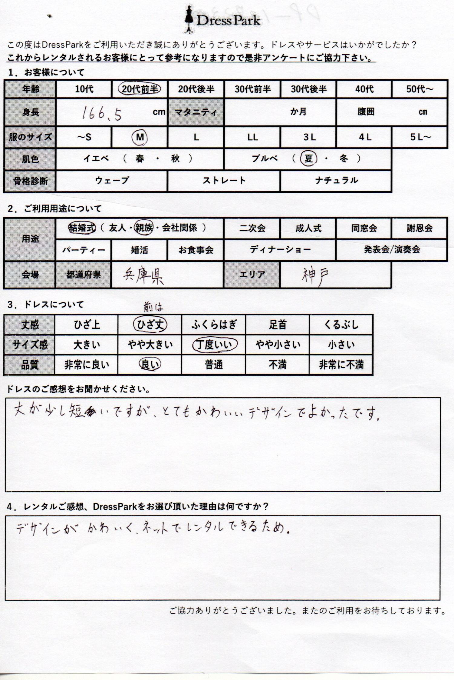兵庫県 A.T様166㎝ Mサイズ神戸・芦屋 #20代#M/L#165~169㎝#結婚式(親族)#兵庫県#神戸・芦屋 ◆レンタルしたドレスはこちら ◆レンタルしたサイズは:M ◆レンタルした日付:2025/12/07 ドレスの着用感 ◆点数: (4点) ◆丈感:ひざ丈 ◆サイズ感:丁度いい ◆品質:良い ◆肌色:ブルべ ドレスの感想 丈が少し短いですが、とても可愛いデザインでよかったです。 レンタルのご感想、DressParkをお選び頂いた理由 デザインが可愛くネットでレンタルできるため。 CUSTOMER REVIEWS お客様の声 気になるカテゴリー別にご利用の感想をチェック! ◆AGE 年代で見る 10代 20代 30代 40代 50代~ ◆SIZE サイズで見る SS/S M/L 大きいサイズLL~ ◆HIGHT 身長で見る 140~149㎝ 150~154㎝ 155~159㎝ 160~164㎝ 165~169㎝ 170㎝以上 ◆マタニティ ~3か月 4~6か月 7~8か月 9~10か月 ◆肌色 イエベ ブルべ ◆骨格診断 ウェーブ ストレート ナチュラル ◆利用シーン 結婚式(友人) 結婚式(親族) 結婚式(会社関係) 二次会 成人式 謝恩会 パーティー その他 CUSTOMER REVIEWS都道府県別お客様の声 都道府県別にのお客様の声をチェック! 北海道 青森県 岩手県 宮城県 秋田県 山形県 福島県 茨城県 栃木県 群馬県 埼玉県 千葉県 東京都 神奈川県 新潟県 富山県 石川県 福井県 山梨県 長野県 岐阜県 静岡県 愛知県 三重県 滋賀県 京都府 大阪府 兵庫県 奈良県 和歌山県 鳥取県 島根県 岡山県 広島県 山口県 徳島県 香川県 愛媛県 高知県 福岡県 佐賀県 長崎県 熊本県 大分県 宮崎県 鹿児島県 沖縄県 CUSTOMER REVIEWSエリア別お客様の声 都道府県別にのお客様の声をチェック! 札幌 仙台 名古屋 軽井沢 金沢 神戸・芦屋 博多 那覇 梅田・新大阪 難波・心斎橋 鎌倉・湘南 横浜・みなとみらい 舞浜・浦安・幕張 大宮・浦和 青山・表参道 六本木・麻布 渋谷・恵比寿 新宿 池袋 銀座・丸の内 お台場・汐留 鹿児島市 郡山市 福島市 東予 甲府・石和 LINEでお問い合わせ このサイトではJavaScriptを使用しています