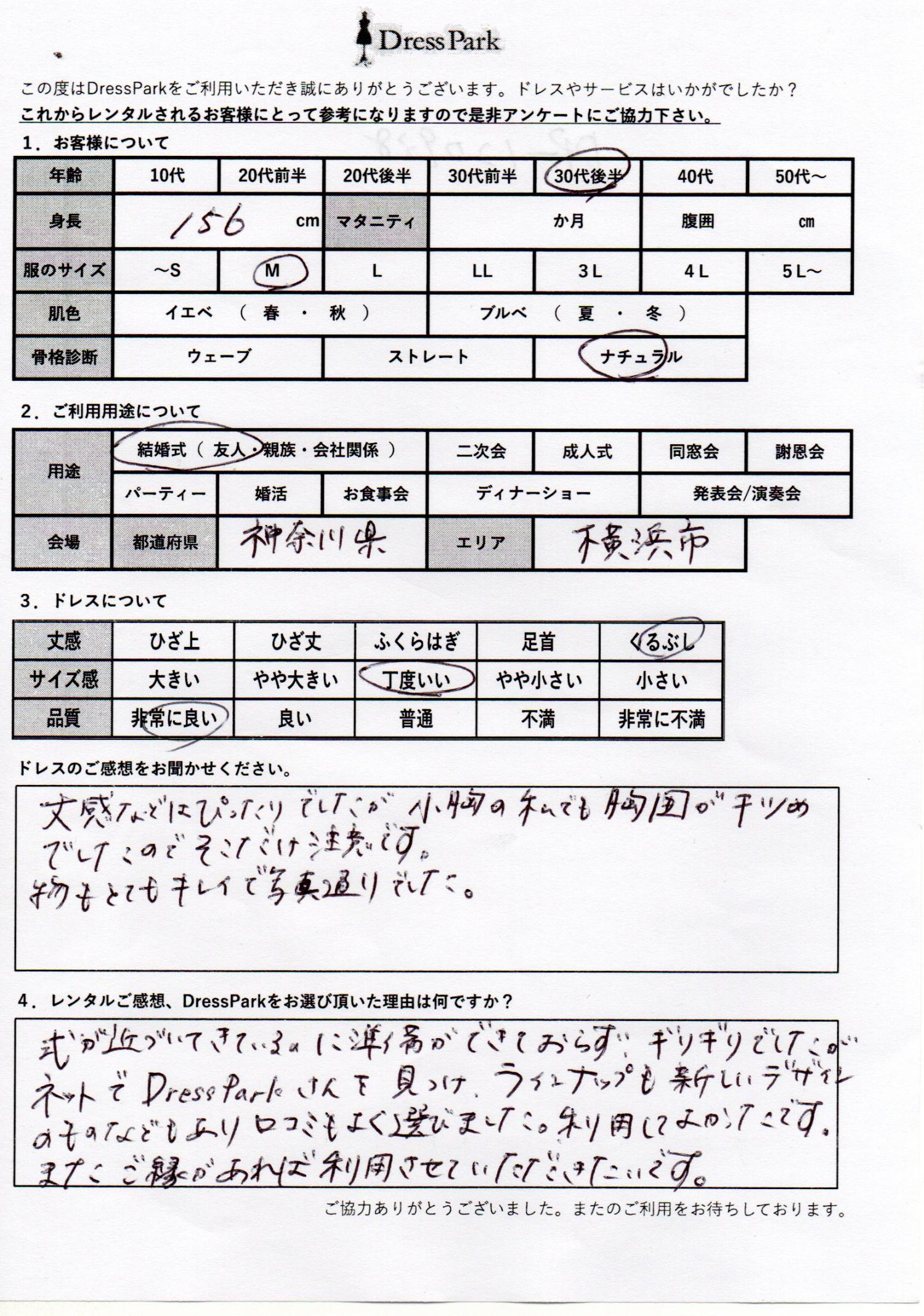 神奈川県 A.N様156㎝ Mサイズ横浜・みなとみらい