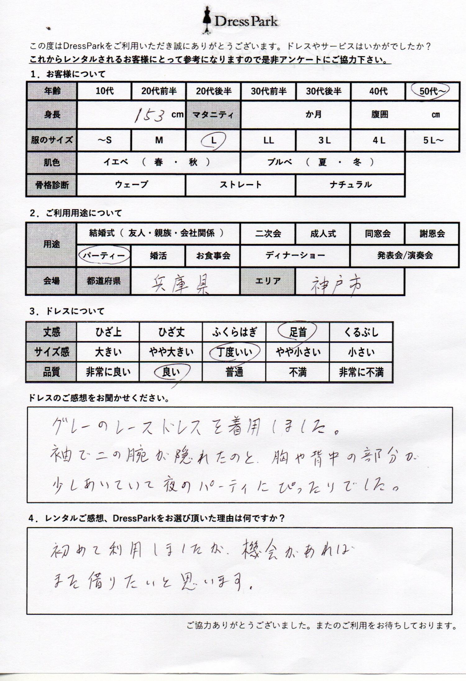 兵庫県 N.I様153㎝ Lサイズ神戸・芦屋 #50代~#M/L#150~154㎝#パーティー#兵庫県#神戸・芦屋 ◆レンタルしたドレスはこちら ◆レンタルしたサイズは:L ◆レンタルした日付:2025/12/07 ドレスの着用感 ◆点数: (4点) ◆丈感:足首 ◆サイズ感:丁度いい ◆品質:良い ドレスの感想 グレーのレースドレスを着用しました。袖で二の腕が隠れたのと、胸や背中の部分が少し空いていて、夜のパーティーにぴったりでした。 レンタルのご感想、DressParkをお選び頂いた理由 初めて利用しましたが、機会があればまた借りたいと思います。 CUSTOMER REVIEWS お客様の声 気になるカテゴリー別にご利用の感想をチェック! ◆AGE 年代で見る 10代 20代 30代 40代 50代~ ◆SIZE サイズで見る SS/S M/L 大きいサイズLL~ ◆HIGHT 身長で見る 140~149㎝ 150~154㎝ 155~159㎝ 160~164㎝ 165~169㎝ 170㎝以上 ◆マタニティ ~3か月 4~6か月 7~8か月 9~10か月 ◆肌色 イエベ ブルべ ◆骨格診断 ウェーブ ストレート ナチュラル ◆利用シーン 結婚式(友人) 結婚式(親族) 結婚式(会社関係) 二次会 成人式 謝恩会 パーティー その他 CUSTOMER REVIEWS都道府県別お客様の声 都道府県別にのお客様の声をチェック! 北海道 青森県 岩手県 宮城県 秋田県 山形県 福島県 茨城県 栃木県 群馬県 埼玉県 千葉県 東京都 神奈川県 新潟県 富山県 石川県 福井県 山梨県 長野県 岐阜県 静岡県 愛知県 三重県 滋賀県 京都府 大阪府 兵庫県 奈良県 和歌山県 鳥取県 島根県 岡山県 広島県 山口県 徳島県 香川県 愛媛県 高知県 福岡県 佐賀県 長崎県 熊本県 大分県 宮崎県 鹿児島県 沖縄県 CUSTOMER REVIEWSエリア別お客様の声 都道府県別にのお客様の声をチェック! 札幌 仙台 名古屋 軽井沢 金沢 神戸・芦屋 博多 那覇 梅田・新大阪 難波・心斎橋 鎌倉・湘南 横浜・みなとみらい 舞浜・浦安・幕張 大宮・浦和 青山・表参道 六本木・麻布 渋谷・恵比寿 新宿 池袋 銀座・丸の内 お台場・汐留 鹿児島市 郡山市 福島市 東予 甲府・石和 LINEでお問い合わせ このサイトではJavaScriptを使用しています