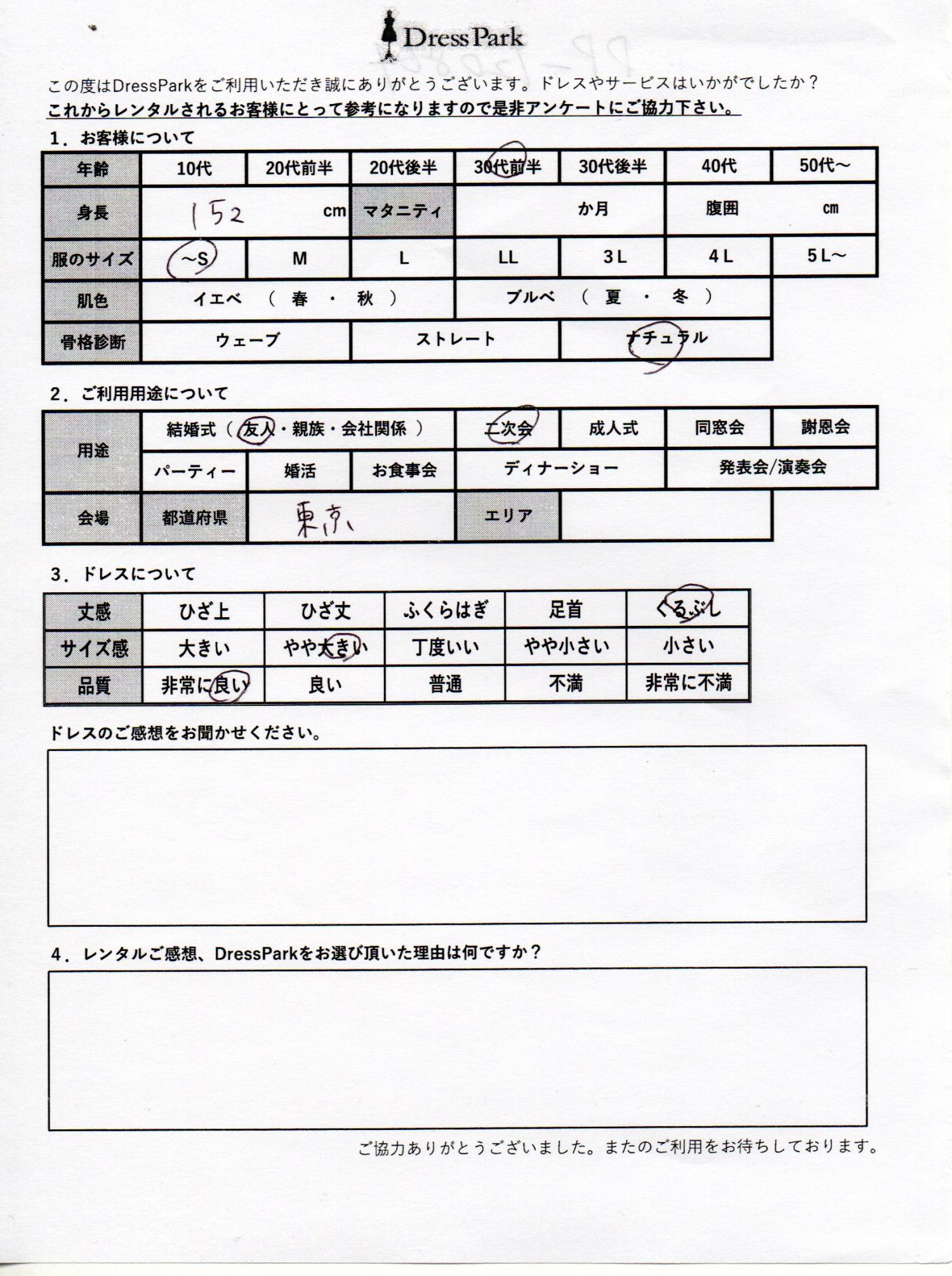 東京都 K.S様152㎝ ~Sサイズ