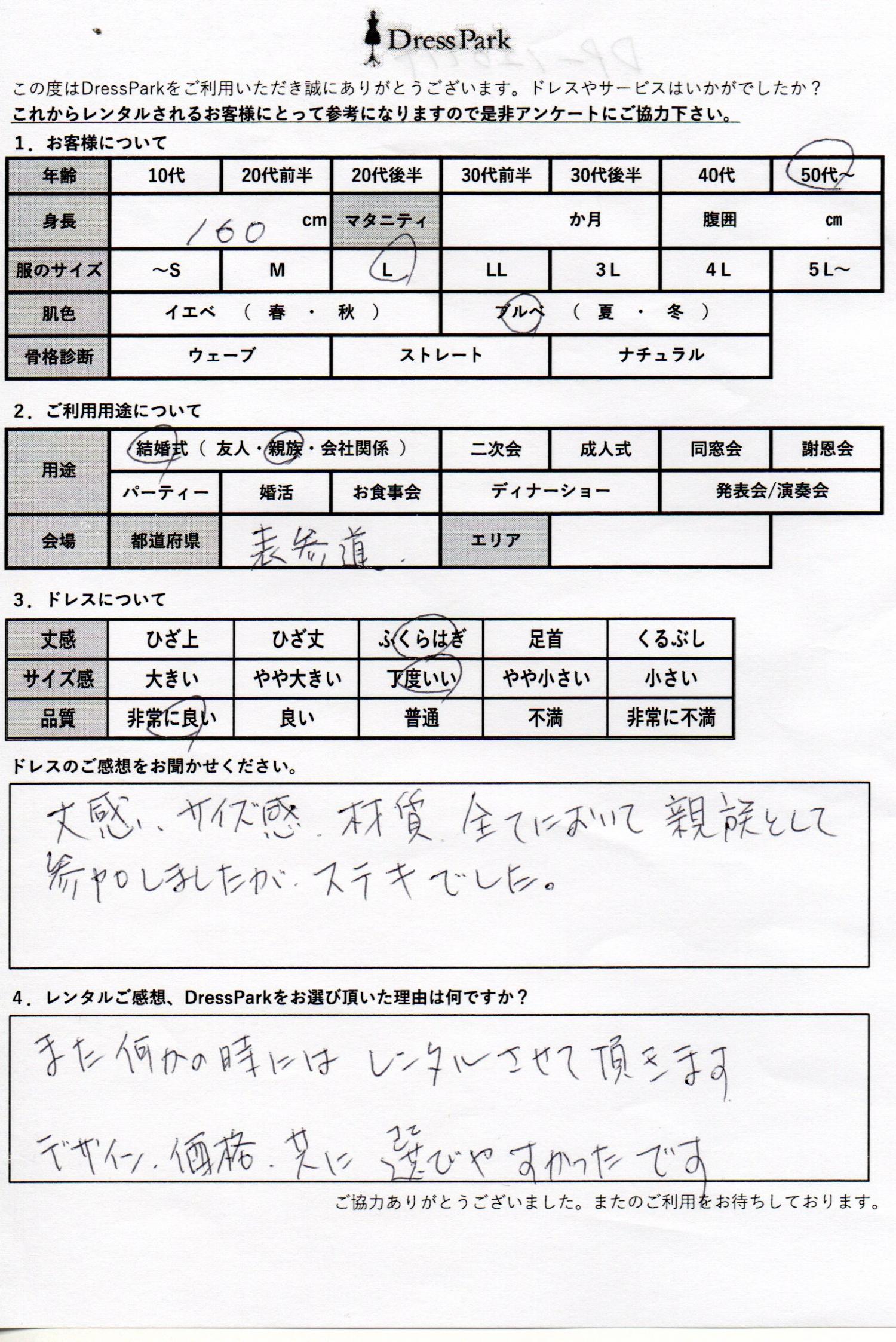 東京都 K.K様160㎝ Lサイズ青山・表参道 #50代~#M/L#160~164㎝#結婚式(親族)#東京都#青山・表参道 ◆レンタルしたドレスはこちら ◆レンタルしたサイズは:L ◆レンタルした日付:2025/12/13 ドレスの着用感 ◆点数: (5点) ◆丈感:ふくらはぎ ◆サイズ感:丁度いい ◆品質:非常に良い ◆肌色:ブルべ ドレスの感想 丈感、サイズ感、材質すべてにおいて、親族として参加しましたが素敵でした。 レンタルのご感想、DressParkをお選び頂いた理由 また何かの時にはレンタルさせていただきます。デザイン価格ともに選びやすかったです。 CUSTOMER REVIEWS お客様の声 気になるカテゴリー別にご利用の感想をチェック! ◆AGE 年代で見る 10代 20代 30代 40代 50代~ ◆SIZE サイズで見る SS/S M/L 大きいサイズLL~ ◆HIGHT 身長で見る 140~149㎝ 150~154㎝ 155~159㎝ 160~164㎝ 165~169㎝ 170㎝以上 ◆マタニティ ~3か月 4~6か月 7~8か月 9~10か月 ◆肌色 イエベ ブルべ ◆骨格診断 ウェーブ ストレート ナチュラル ◆利用シーン 結婚式(友人) 結婚式(親族) 結婚式(会社関係) 二次会 成人式 謝恩会 パーティー その他 CUSTOMER REVIEWS都道府県別お客様の声 都道府県別にのお客様の声をチェック! 北海道 青森県 岩手県 宮城県 秋田県 山形県 福島県 茨城県 栃木県 群馬県 埼玉県 千葉県 東京都 神奈川県 新潟県 富山県 石川県 福井県 山梨県 長野県 岐阜県 静岡県 愛知県 三重県 滋賀県 京都府 大阪府 兵庫県 奈良県 和歌山県 鳥取県 島根県 岡山県 広島県 山口県 徳島県 香川県 愛媛県 高知県 福岡県 佐賀県 長崎県 熊本県 大分県 宮崎県 鹿児島県 沖縄県 CUSTOMER REVIEWSエリア別お客様の声 都道府県別にのお客様の声をチェック! 札幌 仙台 名古屋 軽井沢 金沢 神戸・芦屋 博多 那覇 梅田・新大阪 難波・心斎橋 鎌倉・湘南 横浜・みなとみらい 舞浜・浦安・幕張 大宮・浦和 青山・表参道 六本木・麻布 渋谷・恵比寿 新宿 池袋 銀座・丸の内 お台場・汐留 鹿児島市 郡山市 福島市 東予 甲府・石和 LINEでお問い合わせ このサイトではJavaScriptを使用しています