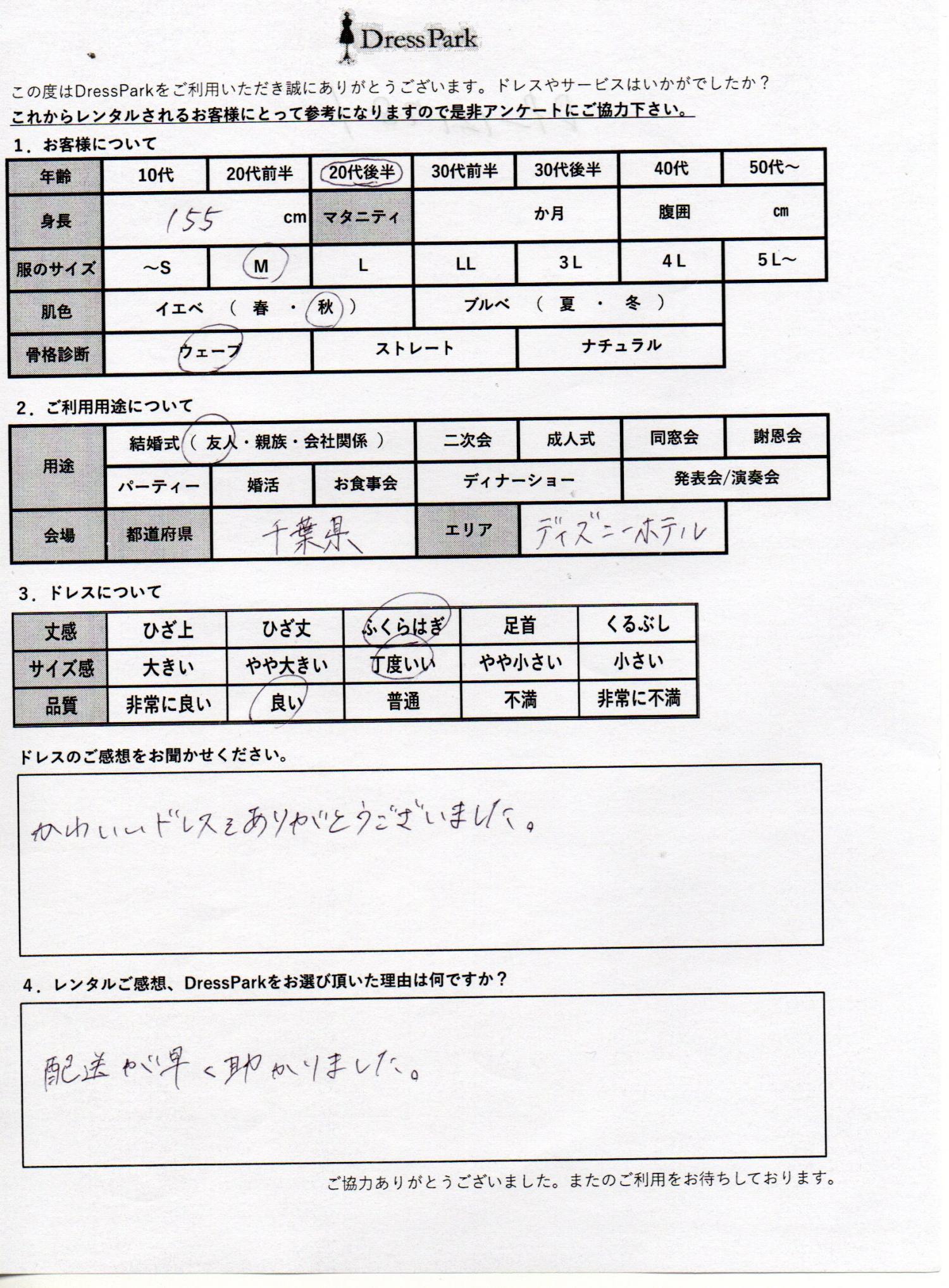 千葉県 F.K様155㎝ Mサイズ舞浜・浦安・幕張 #20代#M/L#155~159㎝#結婚式(友人)#千葉県#舞浜・浦安・幕張 ◆レンタルしたドレスはこちら ◆レンタルしたサイズは:M ◆レンタルした日付:2025/12/13 ドレスの着用感 ◆点数: (4点) ◆丈感:ふくらはぎ ◆サイズ感:丁度いい ◆品質:良い ◆肌色:イエベ ◆骨格診断:ウェーブ ドレスの感想 かわいいドレスをありがとうございました。 レンタルのご感想、DressParkをお選び頂いた理由 配送が早く助かりました。 CUSTOMER REVIEWS お客様の声 気になるカテゴリー別にご利用の感想をチェック! ◆AGE 年代で見る 10代 20代 30代 40代 50代~ ◆SIZE サイズで見る SS/S M/L 大きいサイズLL~ ◆HIGHT 身長で見る 140~149㎝ 150~154㎝ 155~159㎝ 160~164㎝ 165~169㎝ 170㎝以上 ◆マタニティ ~3か月 4~6か月 7~8か月 9~10か月 ◆肌色 イエベ ブルべ ◆骨格診断 ウェーブ ストレート ナチュラル ◆利用シーン 結婚式(友人) 結婚式(親族) 結婚式(会社関係) 二次会 成人式 謝恩会 パーティー その他 CUSTOMER REVIEWS都道府県別お客様の声 都道府県別にのお客様の声をチェック! 北海道 青森県 岩手県 宮城県 秋田県 山形県 福島県 茨城県 栃木県 群馬県 埼玉県 千葉県 東京都 神奈川県 新潟県 富山県 石川県 福井県 山梨県 長野県 岐阜県 静岡県 愛知県 三重県 滋賀県 京都府 大阪府 兵庫県 奈良県 和歌山県 鳥取県 島根県 岡山県 広島県 山口県 徳島県 香川県 愛媛県 高知県 福岡県 佐賀県 長崎県 熊本県 大分県 宮崎県 鹿児島県 沖縄県 CUSTOMER REVIEWSエリア別お客様の声 都道府県別にのお客様の声をチェック! 札幌 仙台 名古屋 軽井沢 金沢 神戸・芦屋 博多 那覇 梅田・新大阪 難波・心斎橋 鎌倉・湘南 横浜・みなとみらい 舞浜・浦安・幕張 大宮・浦和 青山・表参道 六本木・麻布 渋谷・恵比寿 新宿 池袋 銀座・丸の内 お台場・汐留 鹿児島市 郡山市 福島市 東予 甲府・石和 LINEでお問い合わせ このサイトではJavaScriptを使用しています