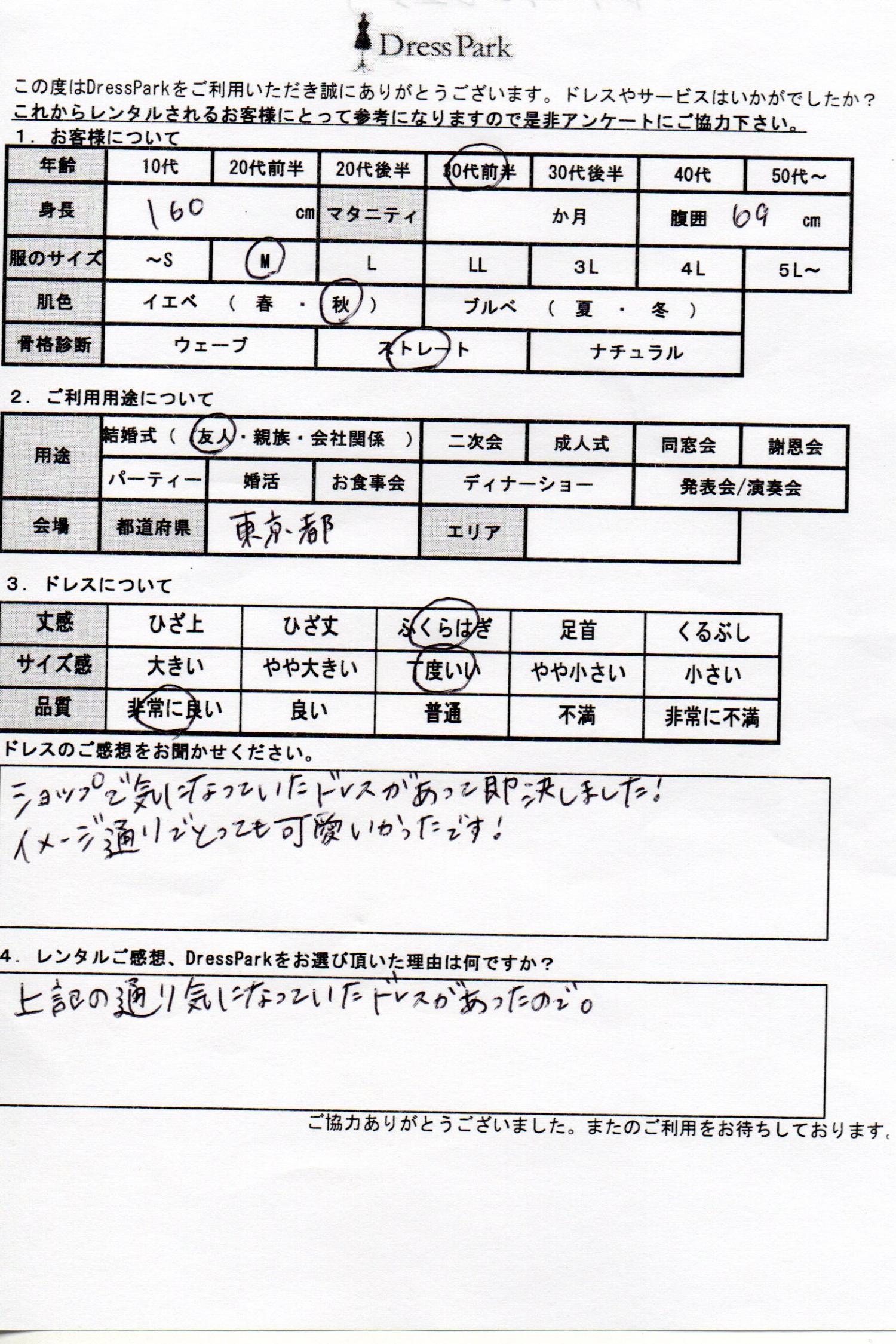 東京都 M.Y様160㎝ Mサイズ #30代#M/L#160~164㎝#結婚式(友人)#東京都 ◆レンタルしたドレスはこちら ◆レンタルしたサイズは:M ◆レンタルした日付:2025/12/13 ドレスの着用感 ◆点数: (5点) ◆丈感:ふくらはぎ ◆サイズ感:丁度いい ◆品質:非常に良い ◆肌色:イエベ ◆骨格診断:ストレート ドレスの感想 ショップで気になっていたドレスがあって、即決しました!イメージ通りでとっても可愛かったです。 レンタルのご感想、DressParkをお選び頂いた理由 上記の通り気になっていたドレスがあったので。 CUSTOMER REVIEWS お客様の声 気になるカテゴリー別にご利用の感想をチェック! ◆AGE 年代で見る 10代 20代 30代 40代 50代~ ◆SIZE サイズで見る SS/S M/L 大きいサイズLL~ ◆HIGHT 身長で見る 140~149㎝ 150~154㎝ 155~159㎝ 160~164㎝ 165~169㎝ 170㎝以上 ◆マタニティ ~3か月 4~6か月 7~8か月 9~10か月 ◆肌色 イエベ ブルべ ◆骨格診断 ウェーブ ストレート ナチュラル ◆利用シーン 結婚式(友人) 結婚式(親族) 結婚式(会社関係) 二次会 成人式 謝恩会 パーティー その他 CUSTOMER REVIEWS都道府県別お客様の声 都道府県別にのお客様の声をチェック! 北海道 青森県 岩手県 宮城県 秋田県 山形県 福島県 茨城県 栃木県 群馬県 埼玉県 千葉県 東京都 神奈川県 新潟県 富山県 石川県 福井県 山梨県 長野県 岐阜県 静岡県 愛知県 三重県 滋賀県 京都府 大阪府 兵庫県 奈良県 和歌山県 鳥取県 島根県 岡山県 広島県 山口県 徳島県 香川県 愛媛県 高知県 福岡県 佐賀県 長崎県 熊本県 大分県 宮崎県 鹿児島県 沖縄県 CUSTOMER REVIEWSエリア別お客様の声 都道府県別にのお客様の声をチェック! 札幌 仙台 名古屋 軽井沢 金沢 神戸・芦屋 博多 那覇 梅田・新大阪 難波・心斎橋 鎌倉・湘南 横浜・みなとみらい 舞浜・浦安・幕張 大宮・浦和 青山・表参道 六本木・麻布 渋谷・恵比寿 新宿 池袋 銀座・丸の内 お台場・汐留 鹿児島市 郡山市 福島市 東予 甲府・石和 LINEでお問い合わせ このサイトではJavaScriptを使用しています