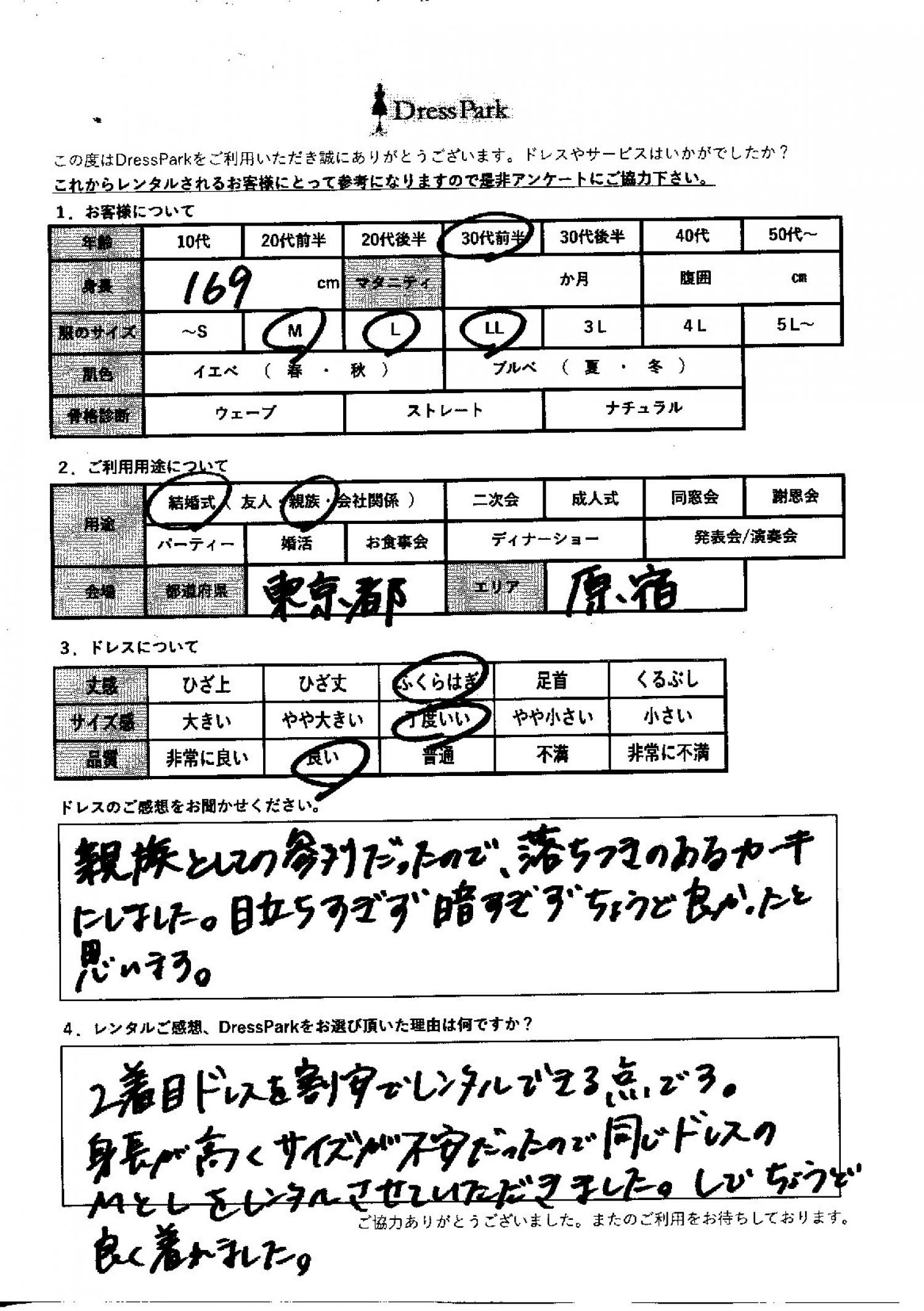 東京都 S.H様169㎝ Lサイズ青山・表参道 #30代#M/L#165~169㎝#結婚式(親族)#東京都#青山・表参道 ◆レンタルしたドレスはこちら ◆レンタルしたサイズは:L ◆レンタルした日付:2025/12/14 ドレスの着用感 ◆点数: (4点) ◆丈感:ふくらはぎ ◆サイズ感:丁度いい ◆品質:良い ドレスの感想 親族としての参列だったので、落ち着きのあるカーキにしました。目立ちすぎず、暗すぎず、ちょうど良かったと思います。 レンタルのご感想、DressParkをお選び頂いた理由 2着目ドレスを割安でレンタルできる点です。身長が高くサイズが不安だったので、同じドレスのM とLをレンタルさせていただきました。Lでちょうどよく着られました。 CUSTOMER REVIEWS お客様の声 気になるカテゴリー別にご利用の感想をチェック! ◆AGE 年代で見る 10代 20代 30代 40代 50代~ ◆SIZE サイズで見る SS/S M/L 大きいサイズLL~ ◆HIGHT 身長で見る 140~149㎝ 150~154㎝ 155~159㎝ 160~164㎝ 165~169㎝ 170㎝以上 ◆マタニティ ~3か月 4~6か月 7~8か月 9~10か月 ◆肌色 イエベ ブルべ ◆骨格診断 ウェーブ ストレート ナチュラル ◆利用シーン 結婚式(友人) 結婚式(親族) 結婚式(会社関係) 二次会 成人式 謝恩会 パーティー その他 CUSTOMER REVIEWS都道府県別お客様の声 都道府県別にのお客様の声をチェック! 北海道 青森県 岩手県 宮城県 秋田県 山形県 福島県 茨城県 栃木県 群馬県 埼玉県 千葉県 東京都 神奈川県 新潟県 富山県 石川県 福井県 山梨県 長野県 岐阜県 静岡県 愛知県 三重県 滋賀県 京都府 大阪府 兵庫県 奈良県 和歌山県 鳥取県 島根県 岡山県 広島県 山口県 徳島県 香川県 愛媛県 高知県 福岡県 佐賀県 長崎県 熊本県 大分県 宮崎県 鹿児島県 沖縄県 CUSTOMER REVIEWSエリア別お客様の声 都道府県別にのお客様の声をチェック! 札幌 仙台 名古屋 軽井沢 金沢 神戸・芦屋 博多 那覇 梅田・新大阪 難波・心斎橋 鎌倉・湘南 横浜・みなとみらい 舞浜・浦安・幕張 大宮・浦和 青山・表参道 六本木・麻布 渋谷・恵比寿 新宿 池袋 銀座・丸の内 お台場・汐留 鹿児島市 郡山市 福島市 東予 甲府・石和 LINEでお問い合わせ このサイトではJavaScriptを使用しています