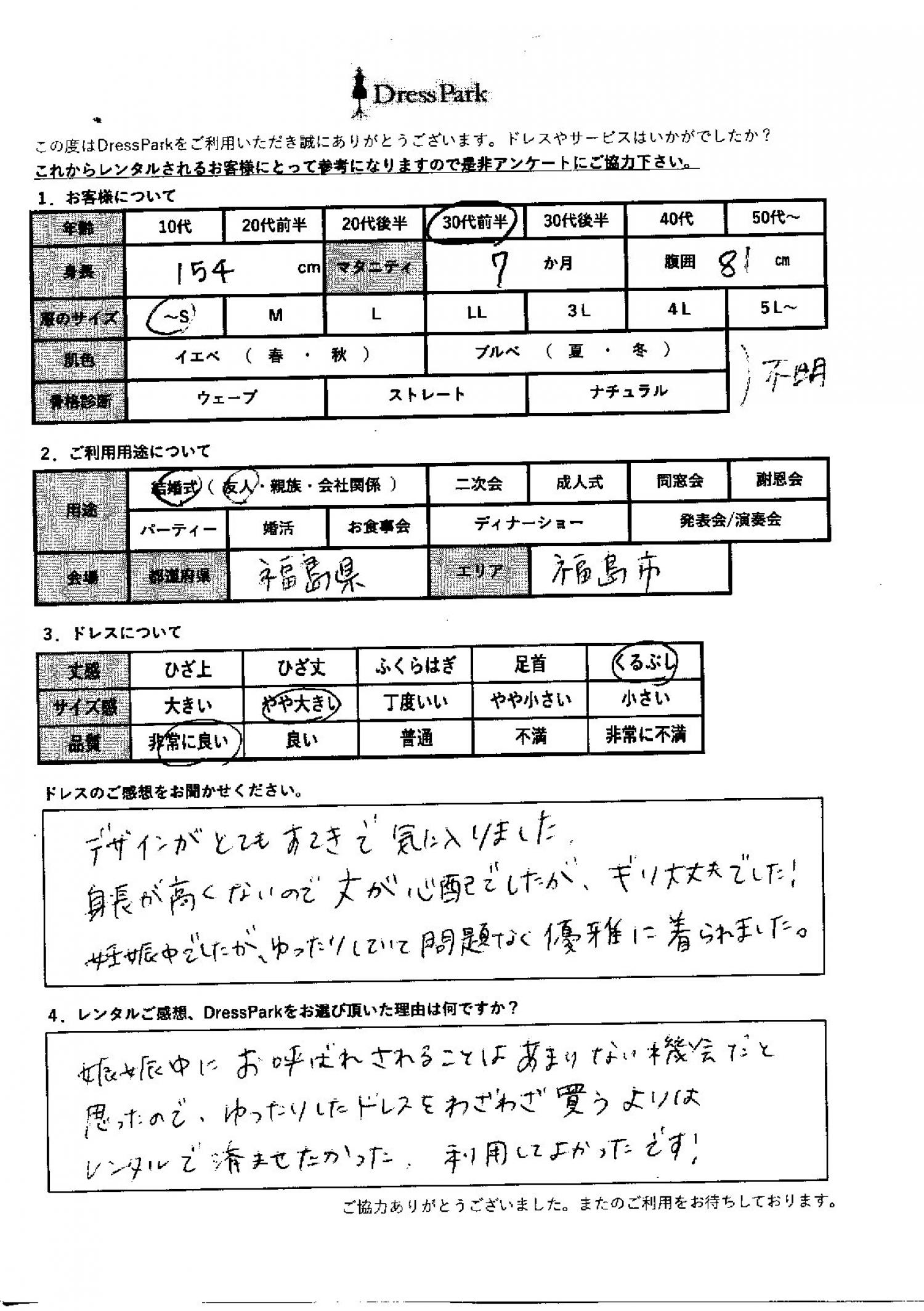 妊娠中にお呼ばれされる事はあまりない機会だと思ったので、ゆったりしたドレスをわざわざ買うよりはレンタルで済ませたかった。利用してよかったです!