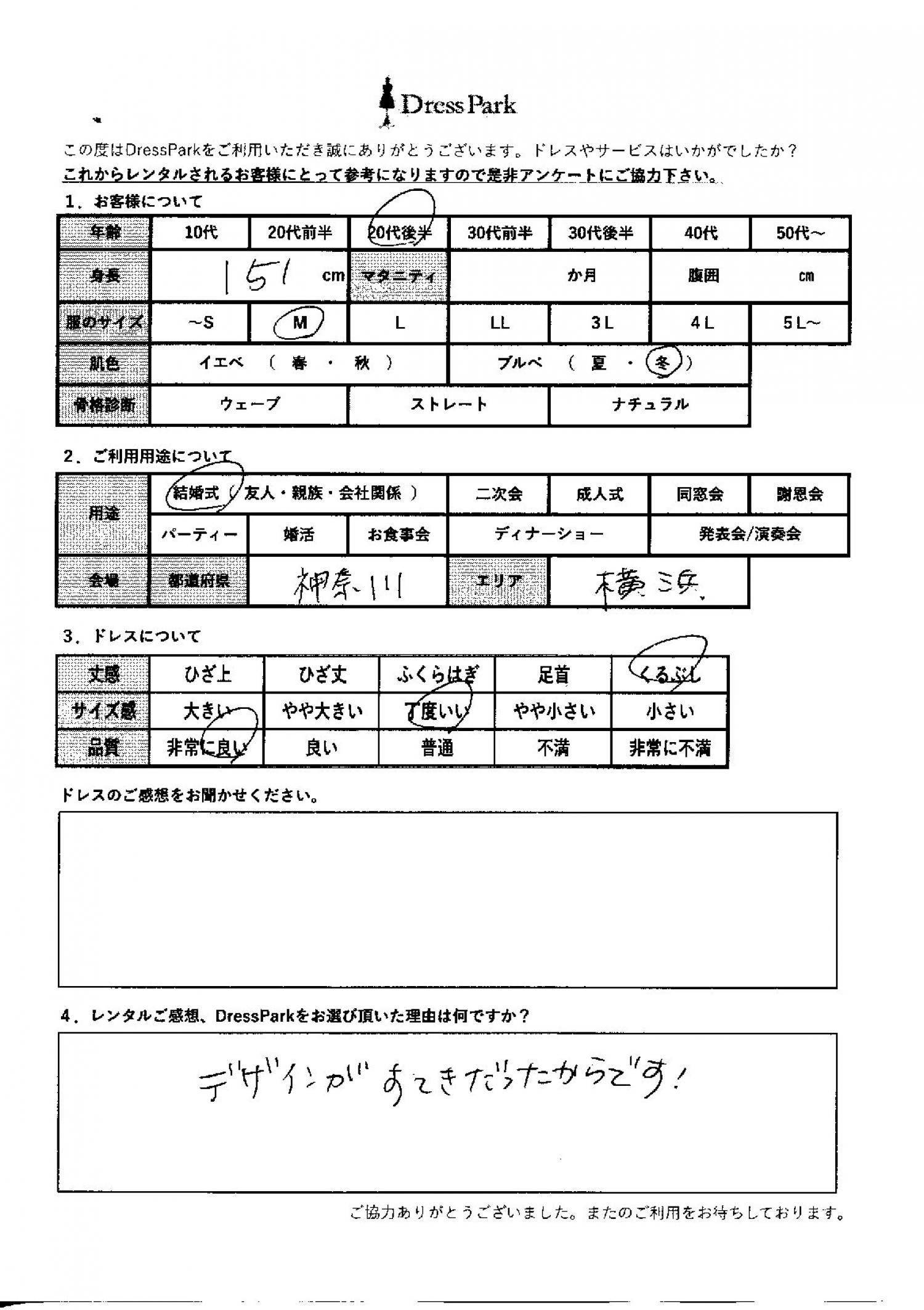 神奈川県 A.K様151㎝ Mサイズ横浜・みなとみらい #20代#M/L#150~154㎝#結婚式(友人)#神奈川県#横浜・みなとみらい ◆レンタルしたドレスはこちら ◆レンタルしたサイズは:M ◆レンタルした日付:2025/12/20 ドレスの着用感 ◆点数: (5点) ◆丈感:くるぶし ◆サイズ感:丁度いい ◆品質:非常に良い ◆肌色:ブルべ レンタルのご感想、DressParkをお選び頂いた理由 デザインが素敵だったからです! CUSTOMER REVIEWS お客様の声 気になるカテゴリー別にご利用の感想をチェック! ◆AGE 年代で見る 10代 20代 30代 40代 50代~ ◆SIZE サイズで見る SS/S M/L 大きいサイズLL~ ◆HIGHT 身長で見る 140~149㎝ 150~154㎝ 155~159㎝ 160~164㎝ 165~169㎝ 170㎝以上 ◆マタニティ ~3か月 4~6か月 7~8か月 9~10か月 ◆肌色 イエベ ブルべ ◆骨格診断 ウェーブ ストレート ナチュラル ◆利用シーン 結婚式(友人) 結婚式(親族) 結婚式(会社関係) 二次会 成人式/同窓会 謝恩会 パーティー その他 CUSTOMER REVIEWS都道府県別お客様の声 都道府県別にのお客様の声をチェック! 北海道 青森県 岩手県 宮城県 秋田県 山形県 福島県 茨城県 栃木県 群馬県 埼玉県 千葉県 東京都 神奈川県 新潟県 富山県 石川県 福井県 山梨県 長野県 岐阜県 静岡県 愛知県 三重県 滋賀県 京都府 大阪府 兵庫県 奈良県 和歌山県 鳥取県 島根県 岡山県 広島県 山口県 徳島県 香川県 愛媛県 高知県 福岡県 佐賀県 長崎県 熊本県 大分県 宮崎県 鹿児島県 沖縄県 CUSTOMER REVIEWSエリア別お客様の声 都道府県別にのお客様の声をチェック! 札幌 仙台 名古屋 軽井沢 金沢 神戸・芦屋 博多 那覇 梅田・新大阪 難波・心斎橋 鎌倉・湘南 横浜・みなとみらい 舞浜・浦安・幕張 大宮・浦和 青山・表参道 六本木・麻布 渋谷・恵比寿 新宿 池袋 銀座・丸の内 お台場・汐留 鹿児島市 郡山市 福島市 東予 甲府・石和 LINEでお問い合わせ このサイトではJavaScriptを使用しています