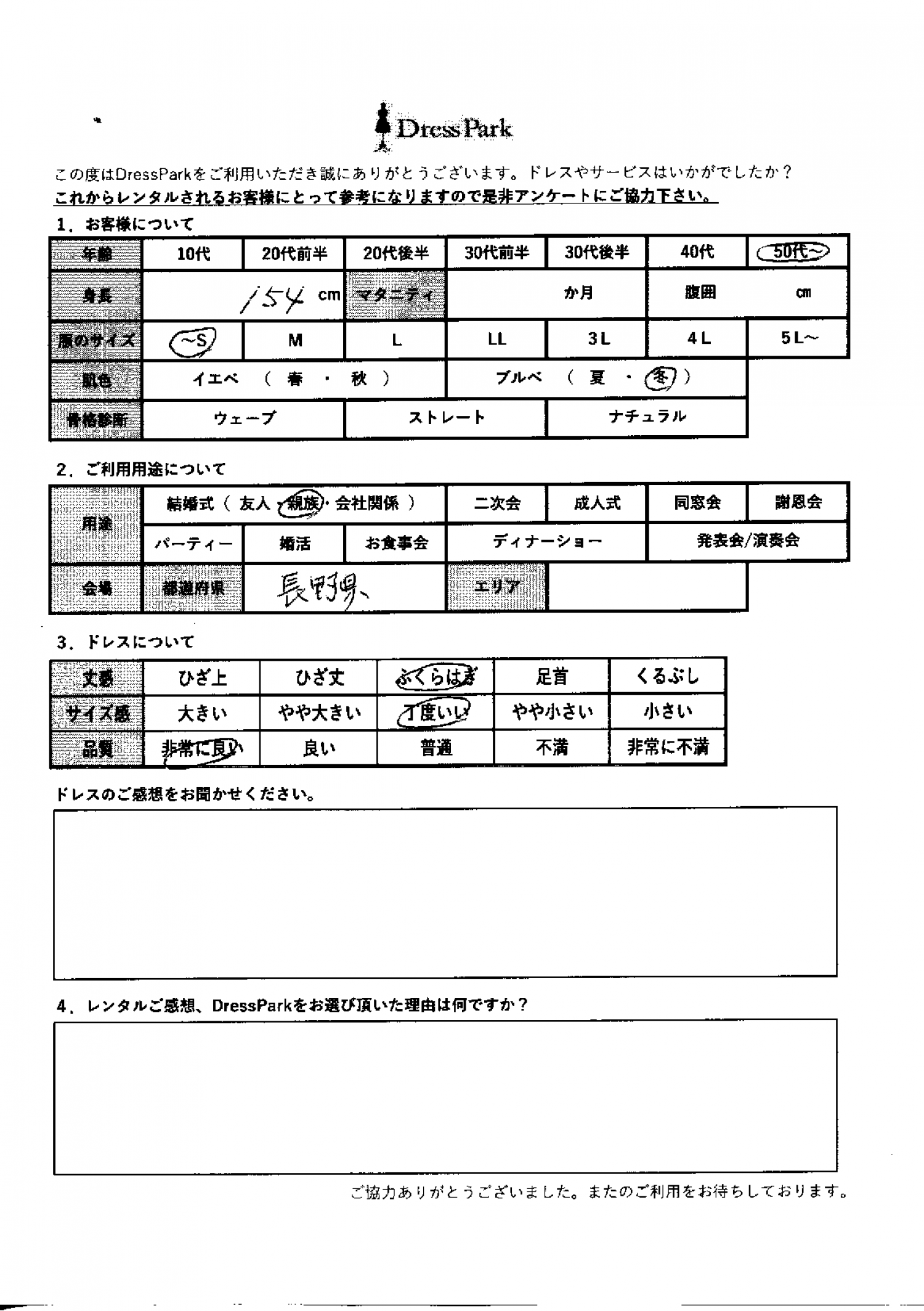 長野県 Y.N様154㎝ ~Sサイズ