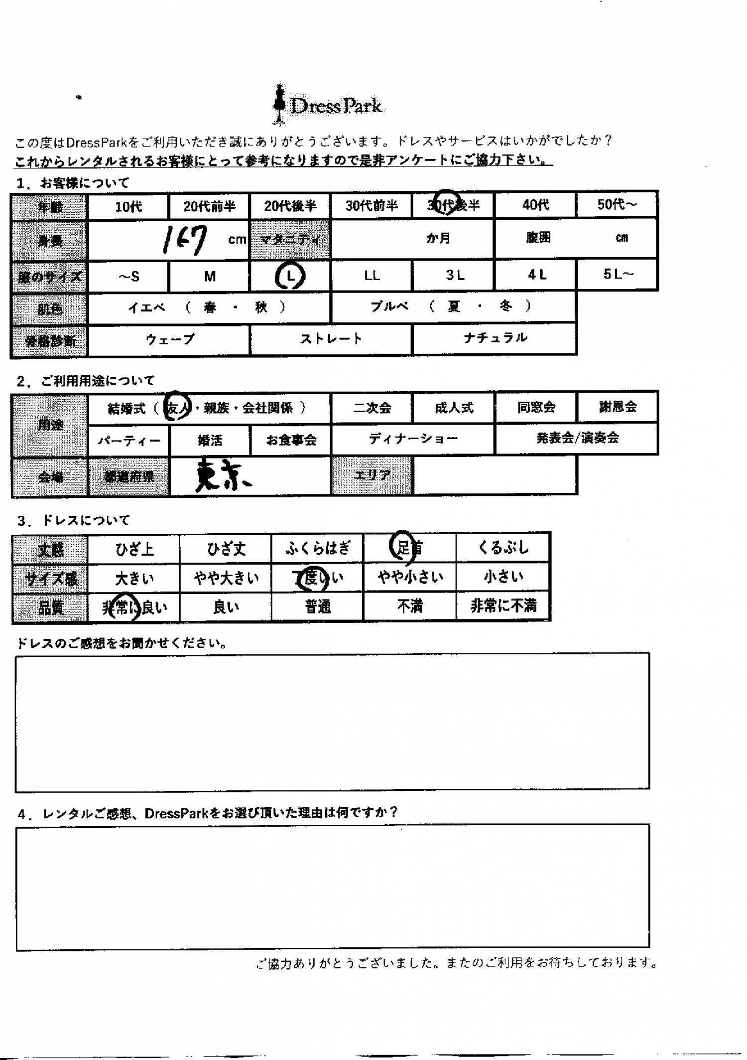 東京都 I.M様167㎝ Lサイズ