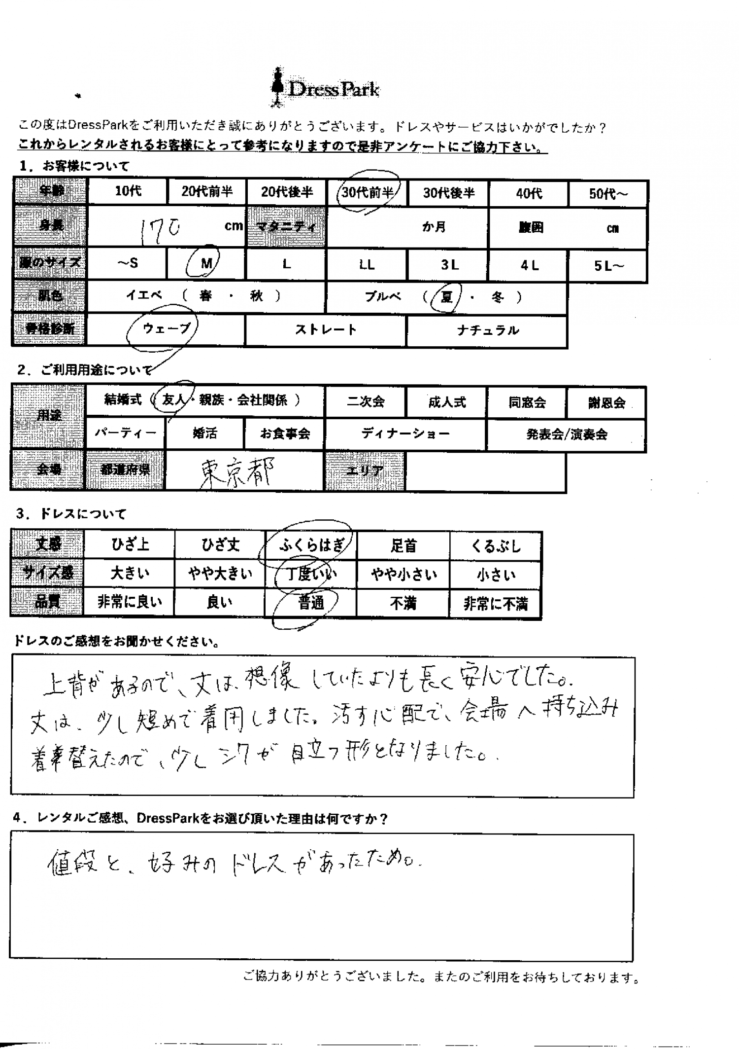 DressParkをお選び頂いた理由