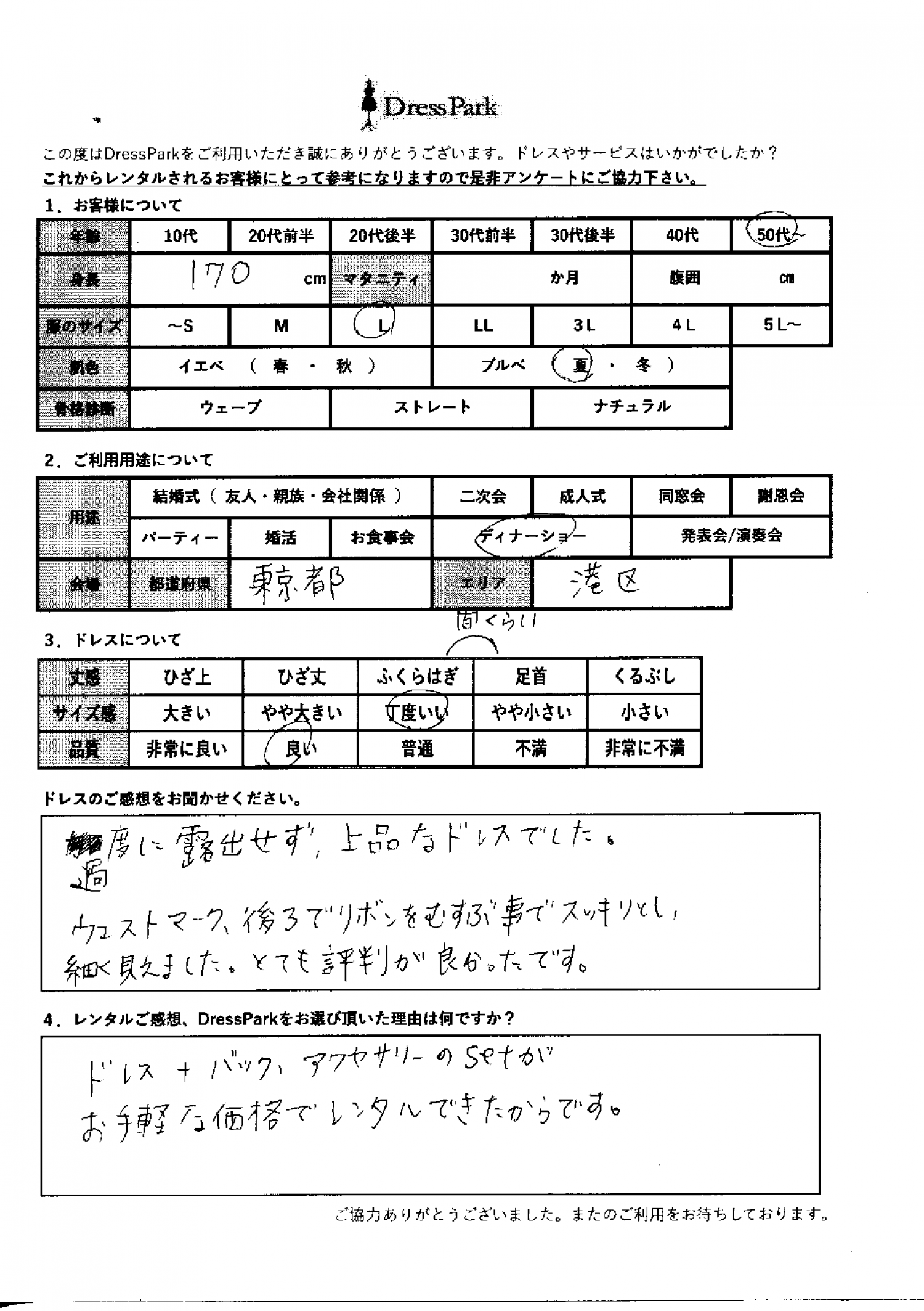 DressParkをお選び頂いた理由