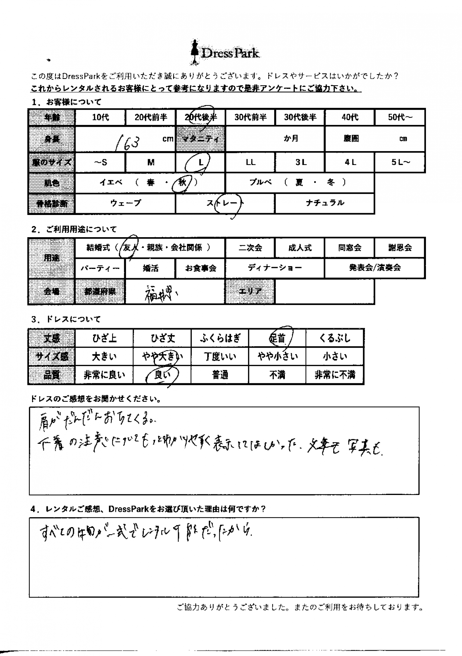 この度はご利用ありがとうございました。ドレスページの「商品説明」の箇所に「インナーガイド」の記載がございます。是非参考にされてください。