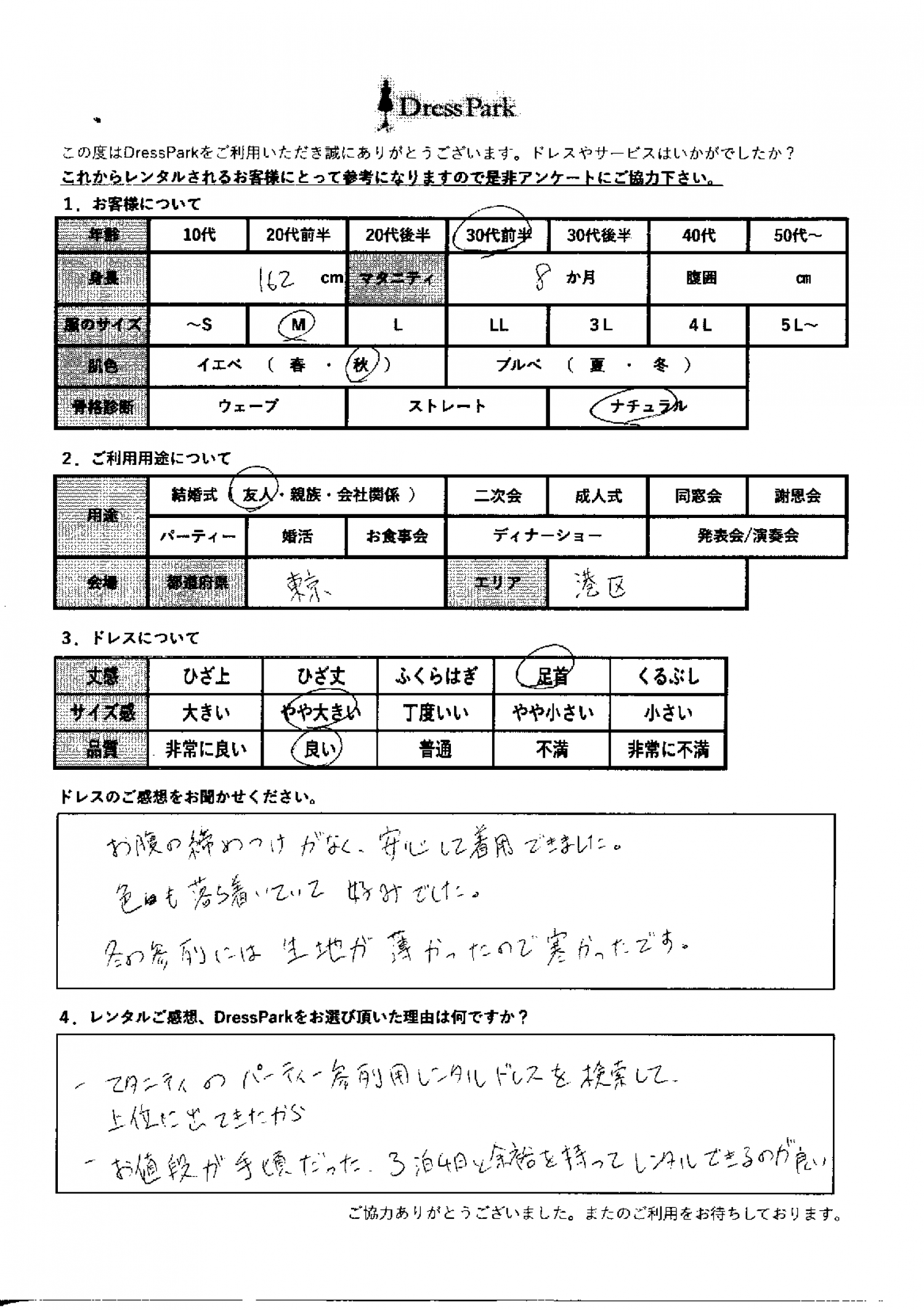 東京都 S.H様162㎝ Mサイズ六本木・麻布 マタニティ