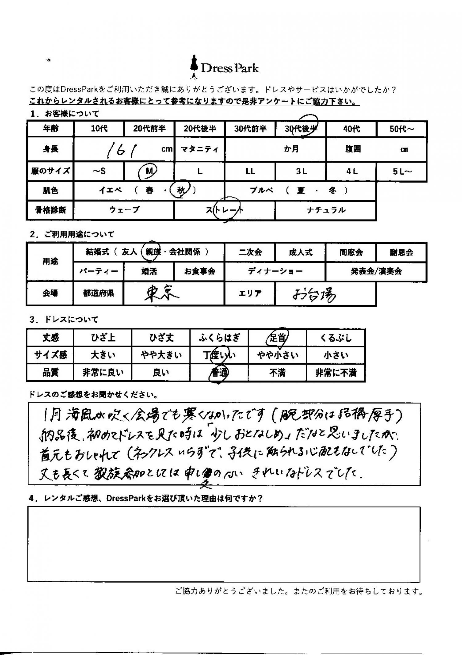 東京都 M.K様161㎝ Mサイズお台場・汐留