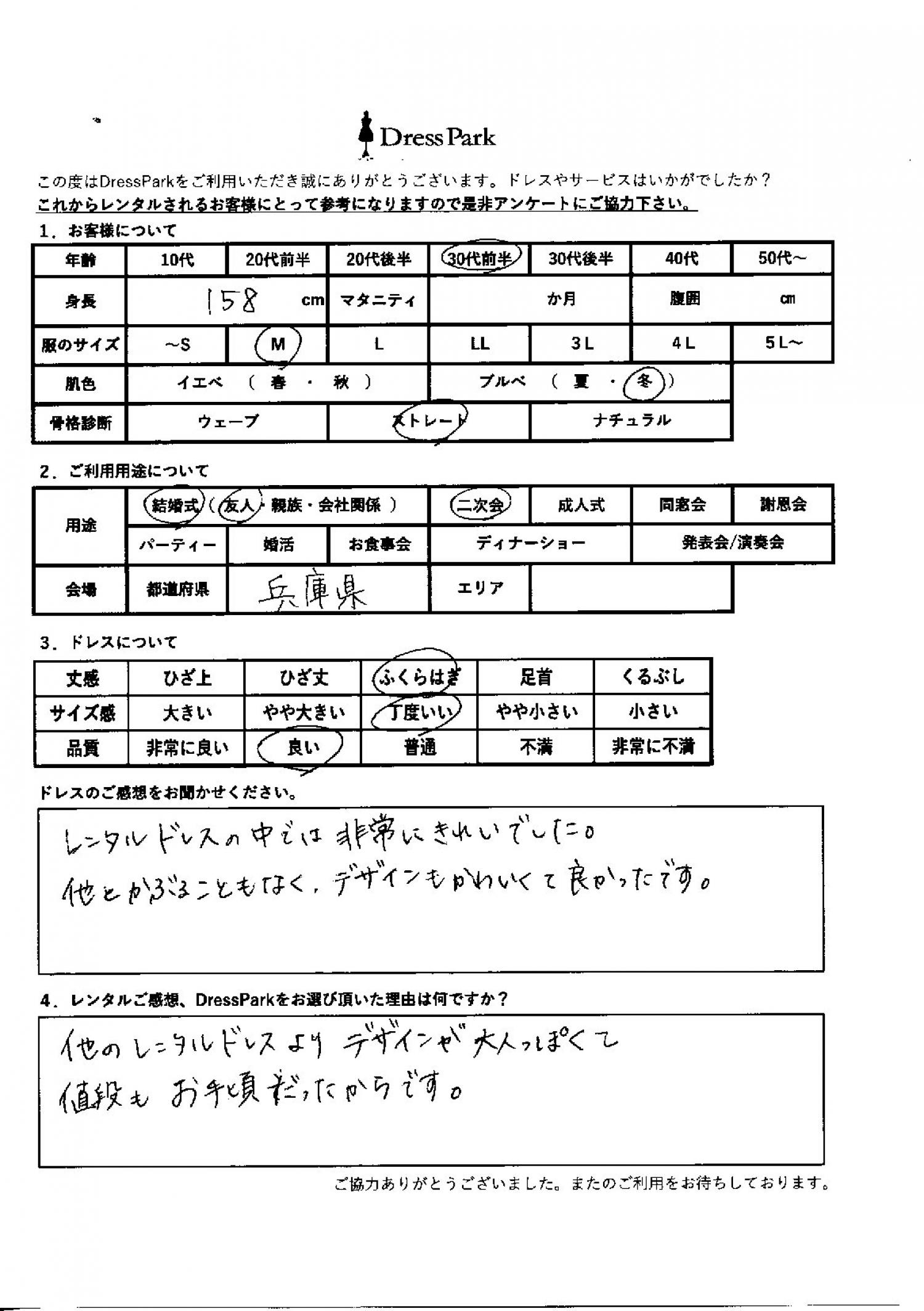 レンタルドレスの中では非常にきれいでした。他と被ることもなく、デザインも可愛くて良かったです。レンタルのご感想、