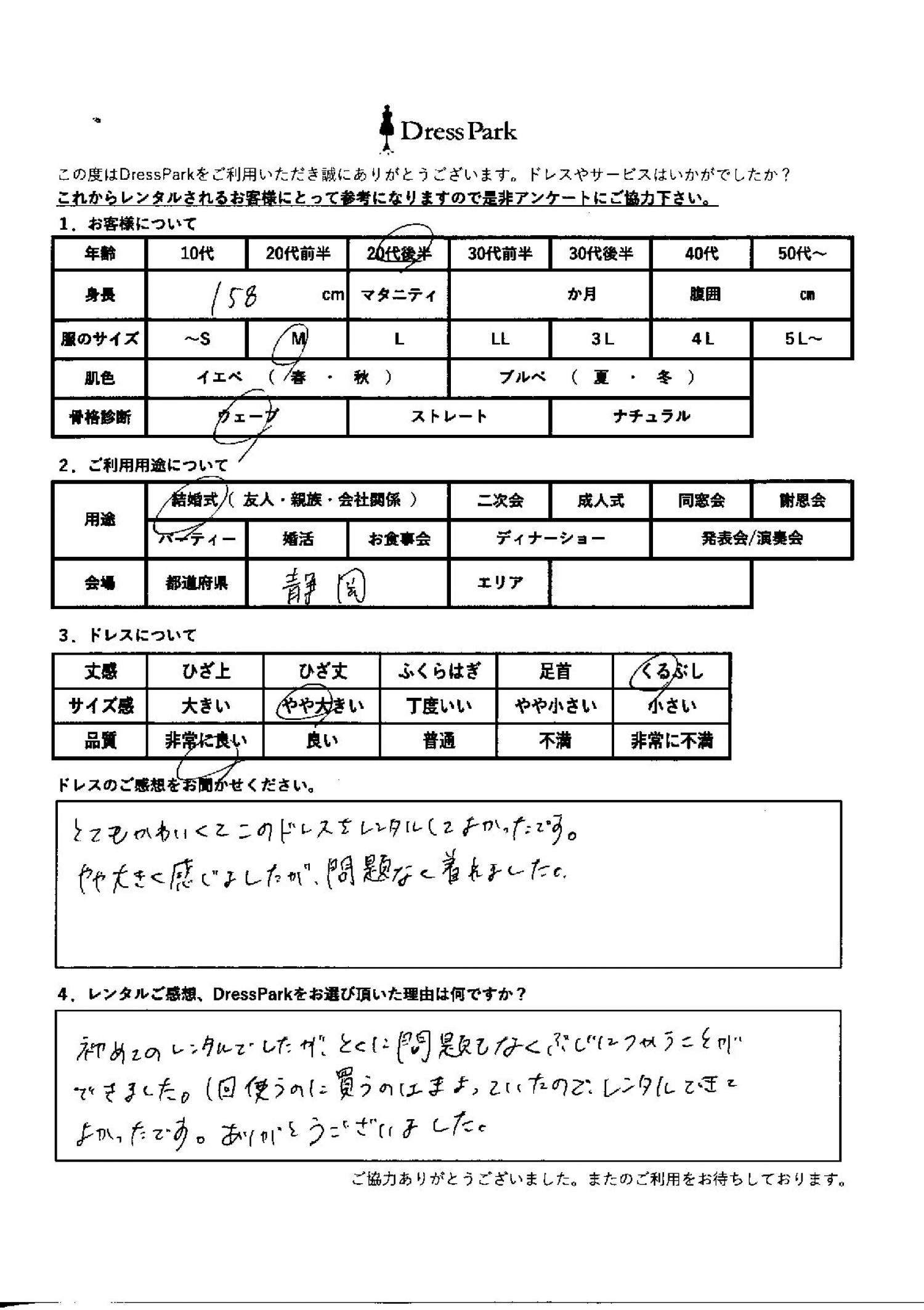 静岡県 Y.U様158㎝ Mサイズ