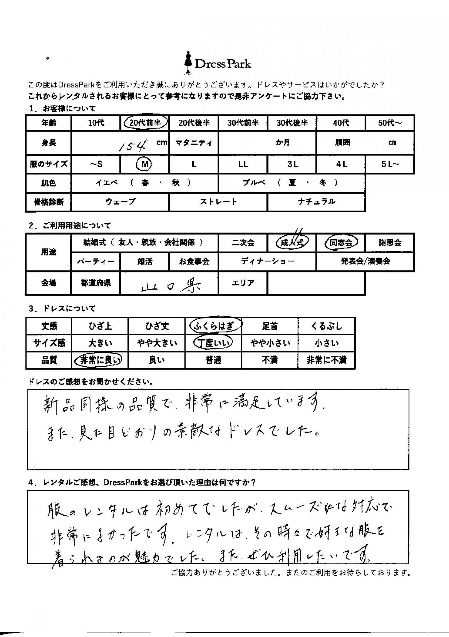 山口県 N.M様154㎝ Mサイズ