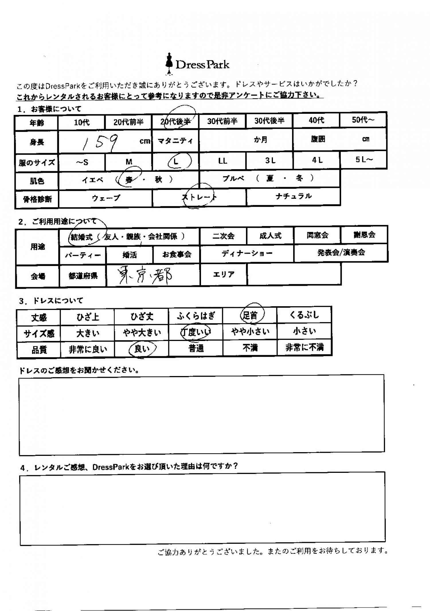 東京都 N.S様159㎝ Lサイズ