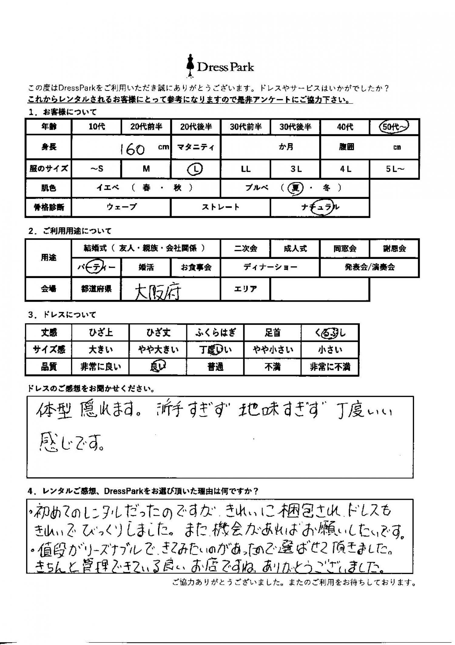 大阪府 M.K様160㎝ Lサイズ