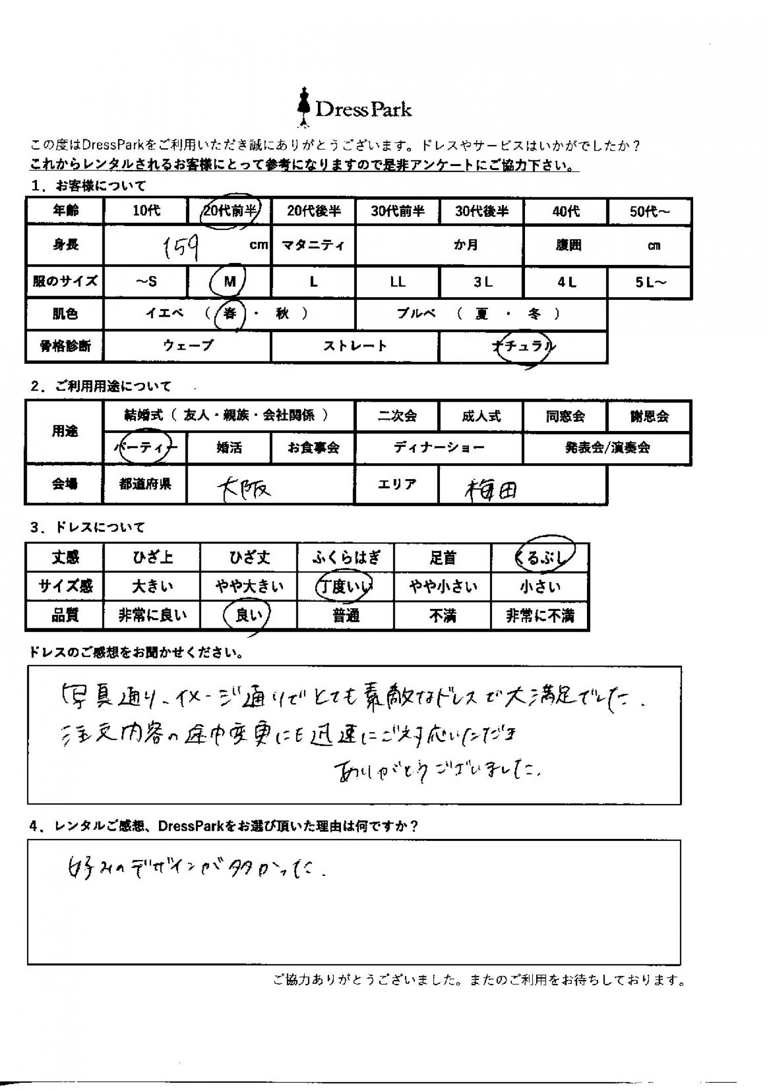 大阪府 M.K様159㎝ Mサイズ梅田・新大阪