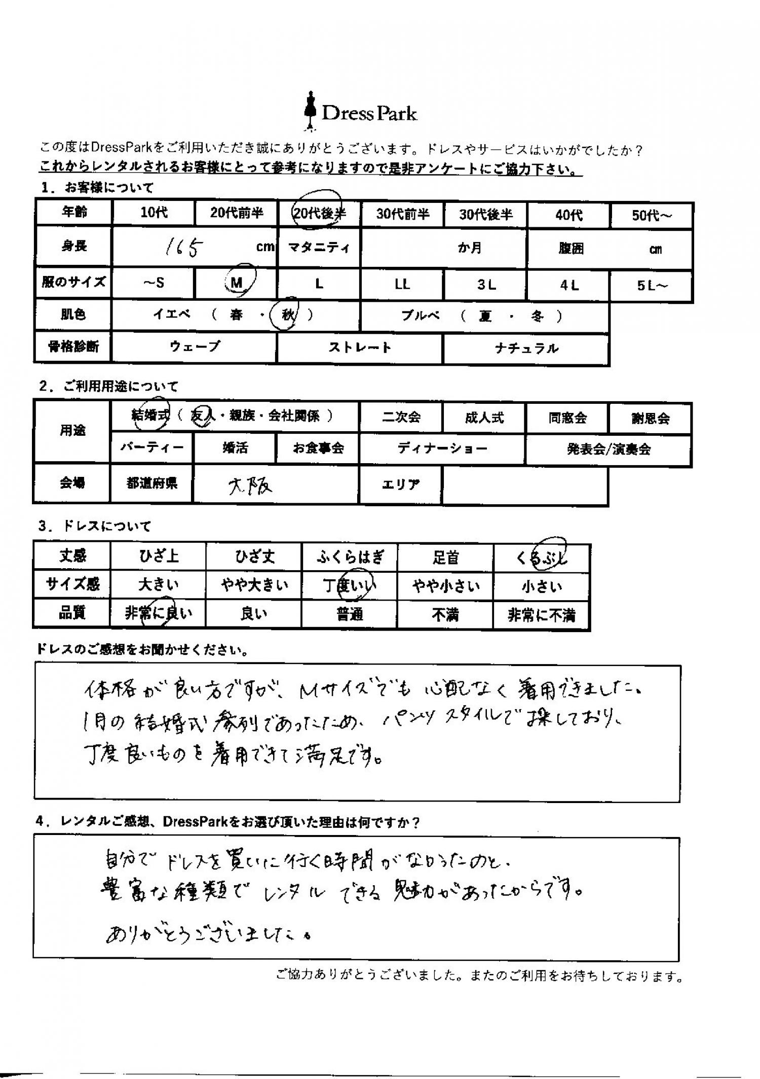 大阪府 M.M様165㎝ Mサイズ